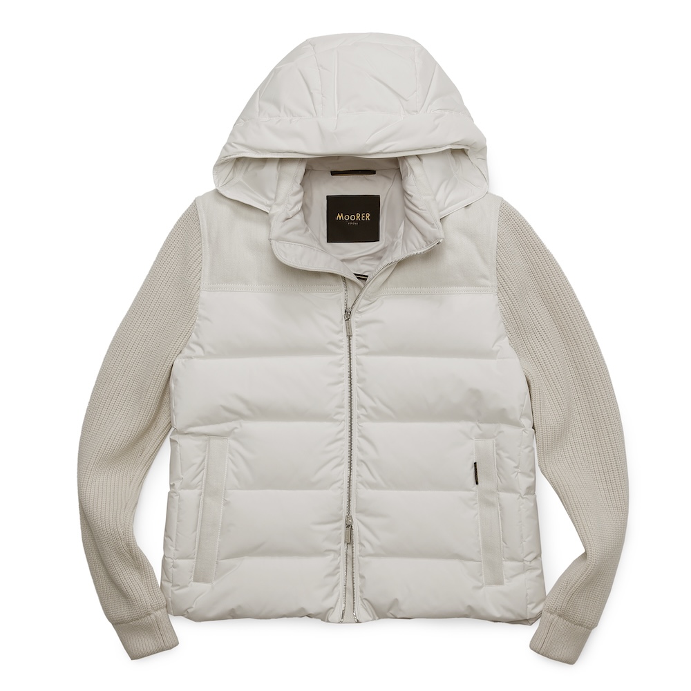VERONAにて、2005秋冬より「MooRER(ムーレー)」メンズをスタート。 " 大人 " が着るアウターブランドとして立ち上げられた同ブランド、最高のフィルパワーを誇る最高級グースダウンを使用したダウンコレクションがメインとなります。表地には、イタリア高級生地メーカーのカシミアや耐久性、摩耗性、撥水性に富む高密度の織のテクニカル素材を使用し、スナップボタンやファスナー、ホーン釦などには全て特注品を使用。リブには、フィット性の高いウール素材を使用し、外気の侵入を完全遮断し、実用性とエレガントさを兼ね備えた大人のダウンアウターのコレクションとなっています。