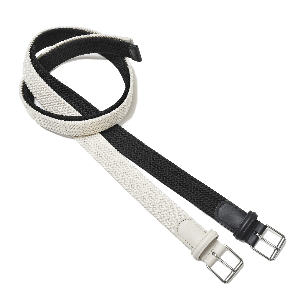 アンダーソンズ / シルバーバックル ゴムメッシュ×レザー コンビベルト/B/0765
