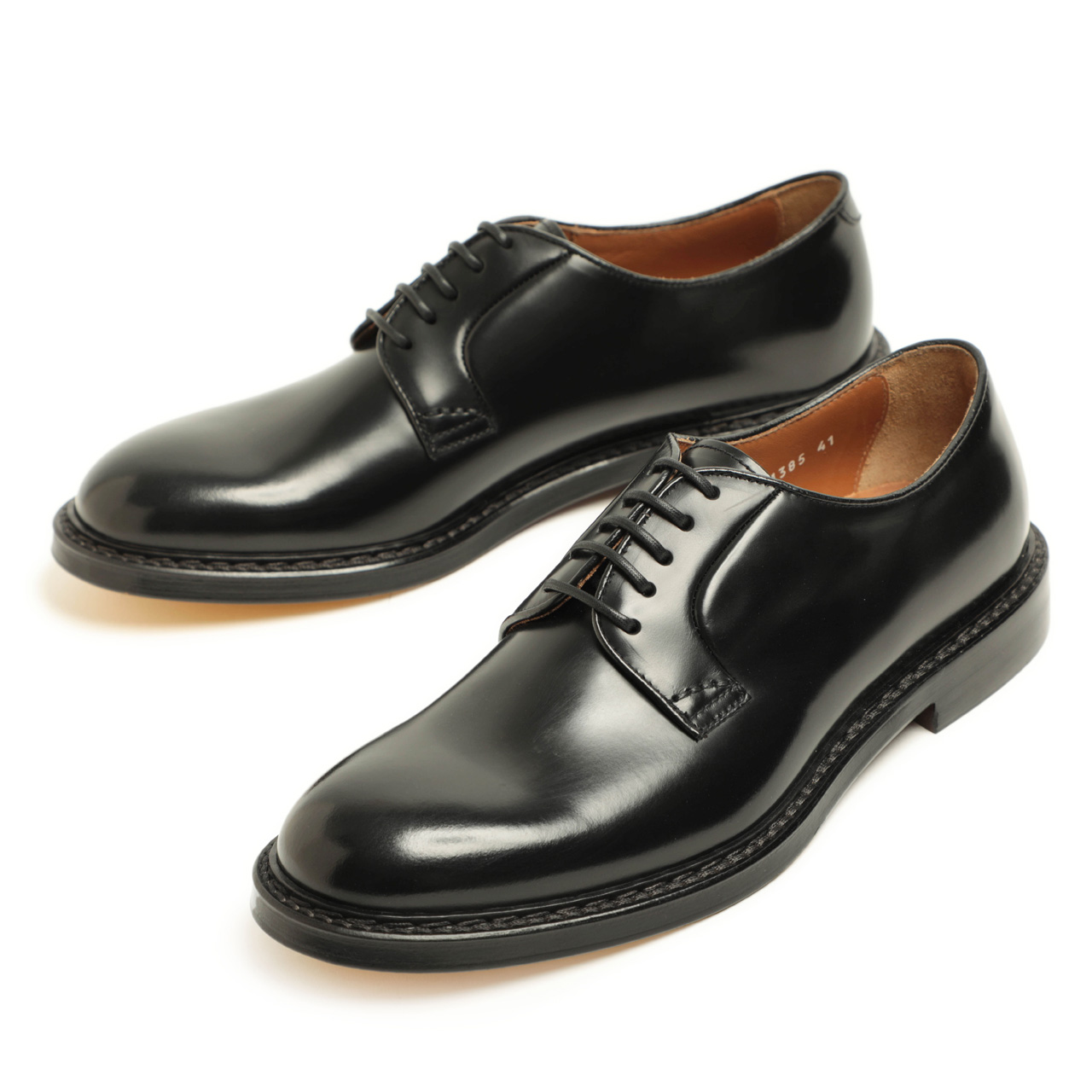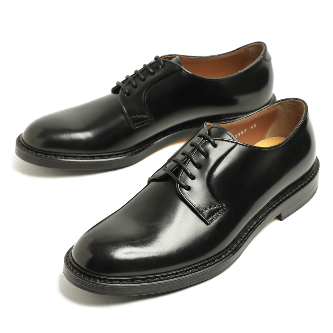 デュカルス / カーフレザー ガラス プレーントゥ ホールカット レースアップ ダービーシューズ / DU1385 / ブラック