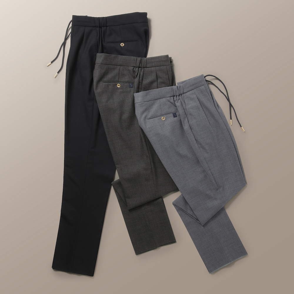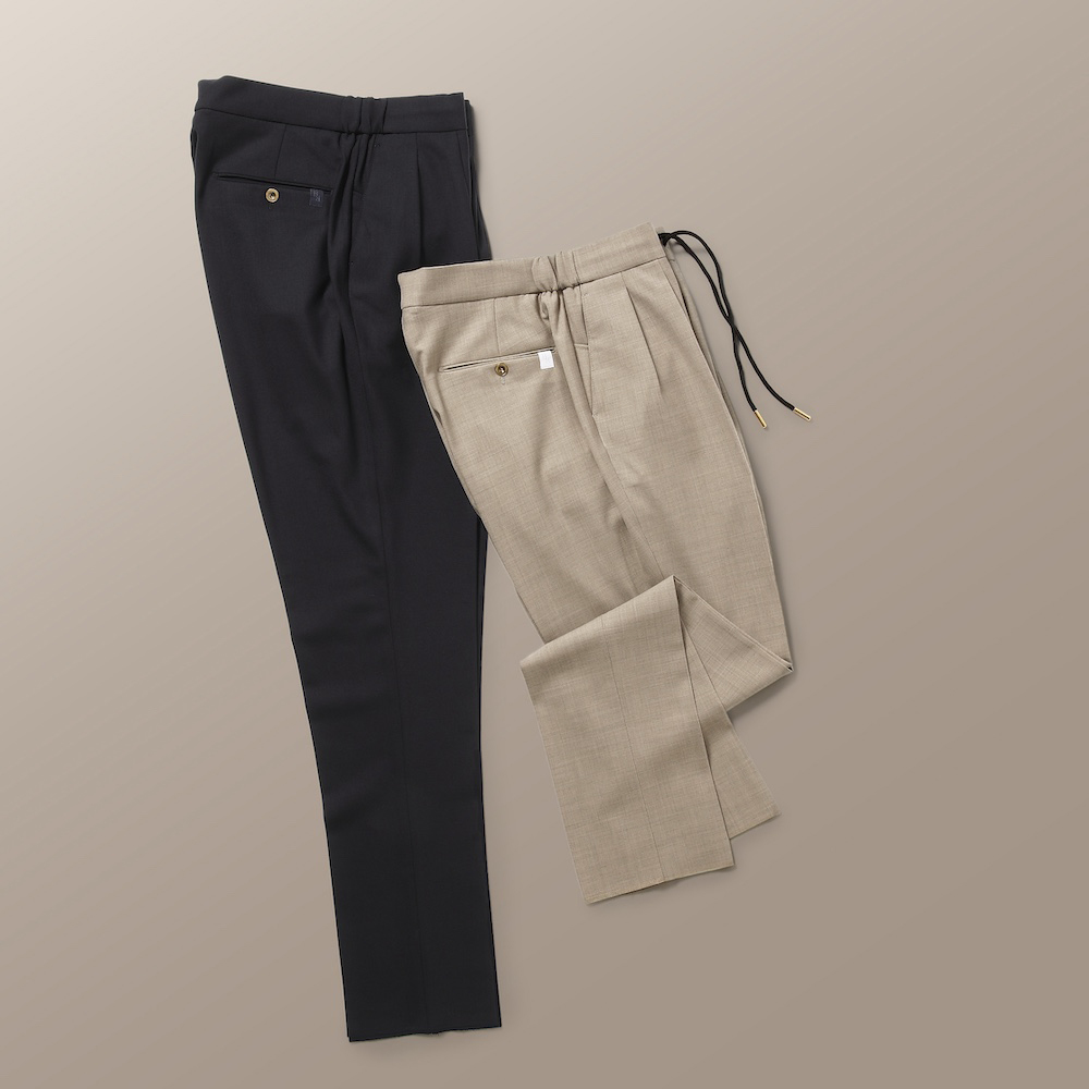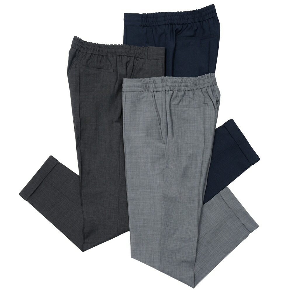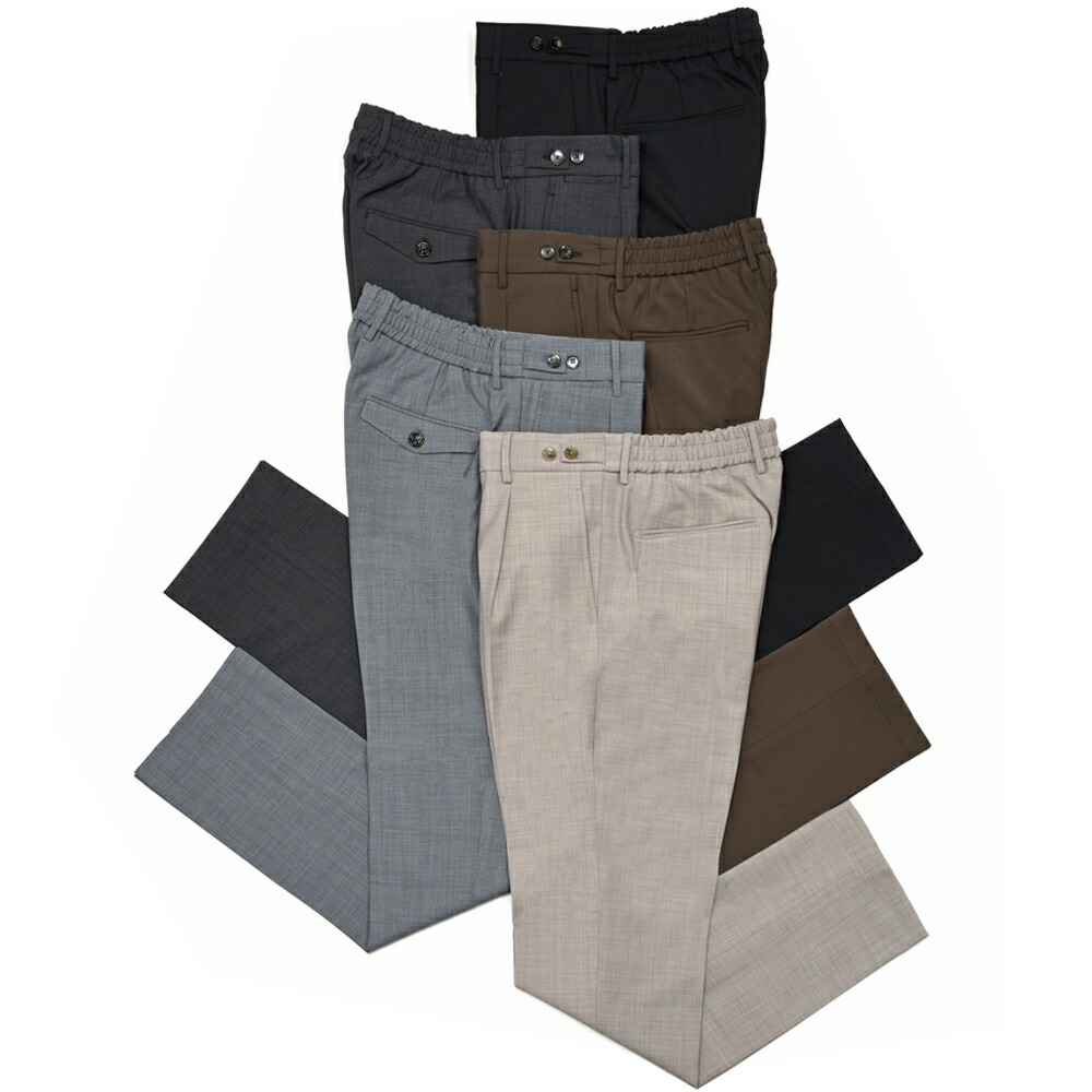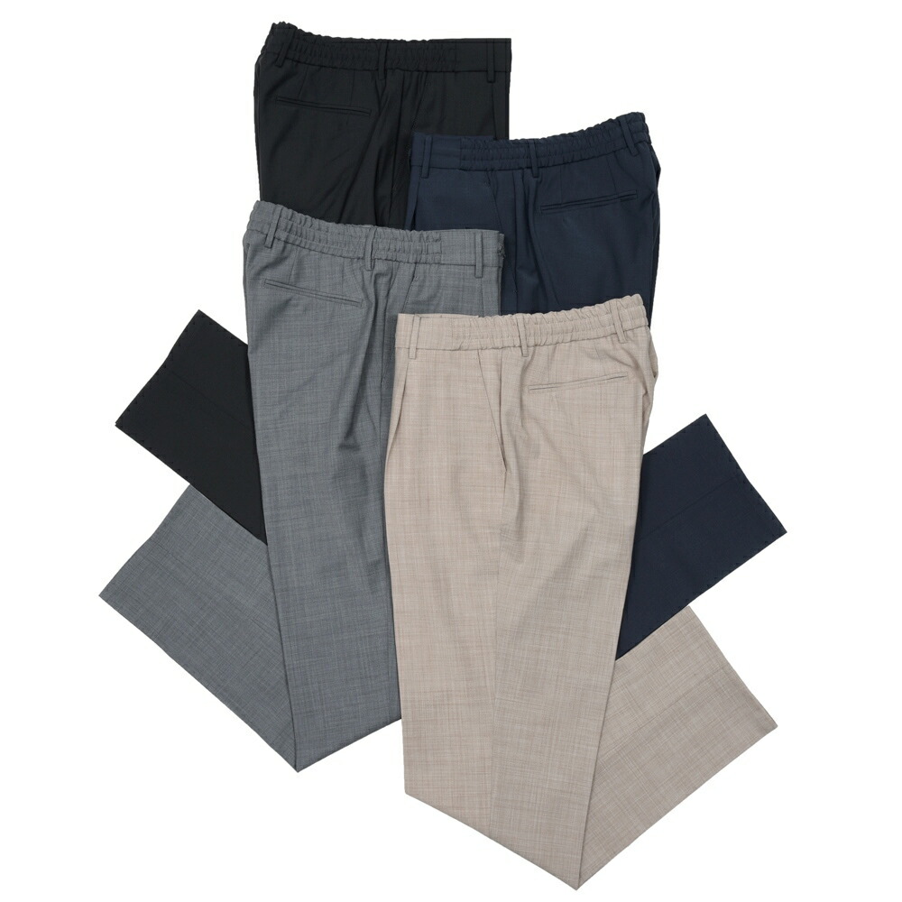 ベルウィッチ / BERTO ポリエステル ウール ストレッチ 1プリーツ テーパード パンツ ウエストゴム / BN7000X / グレー