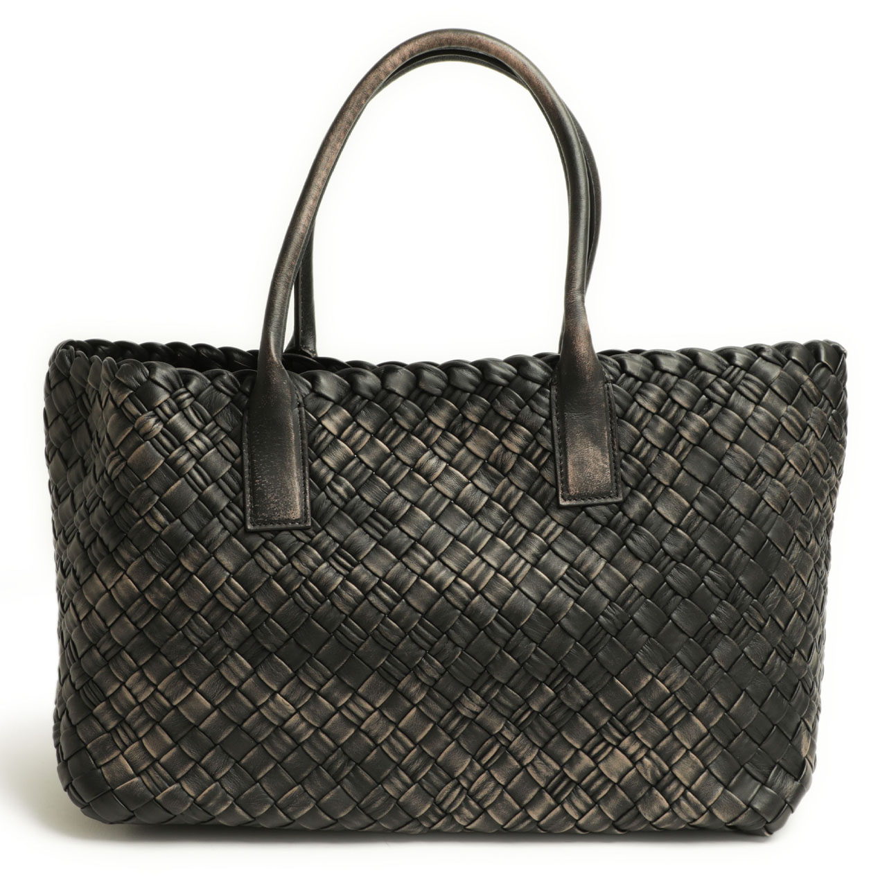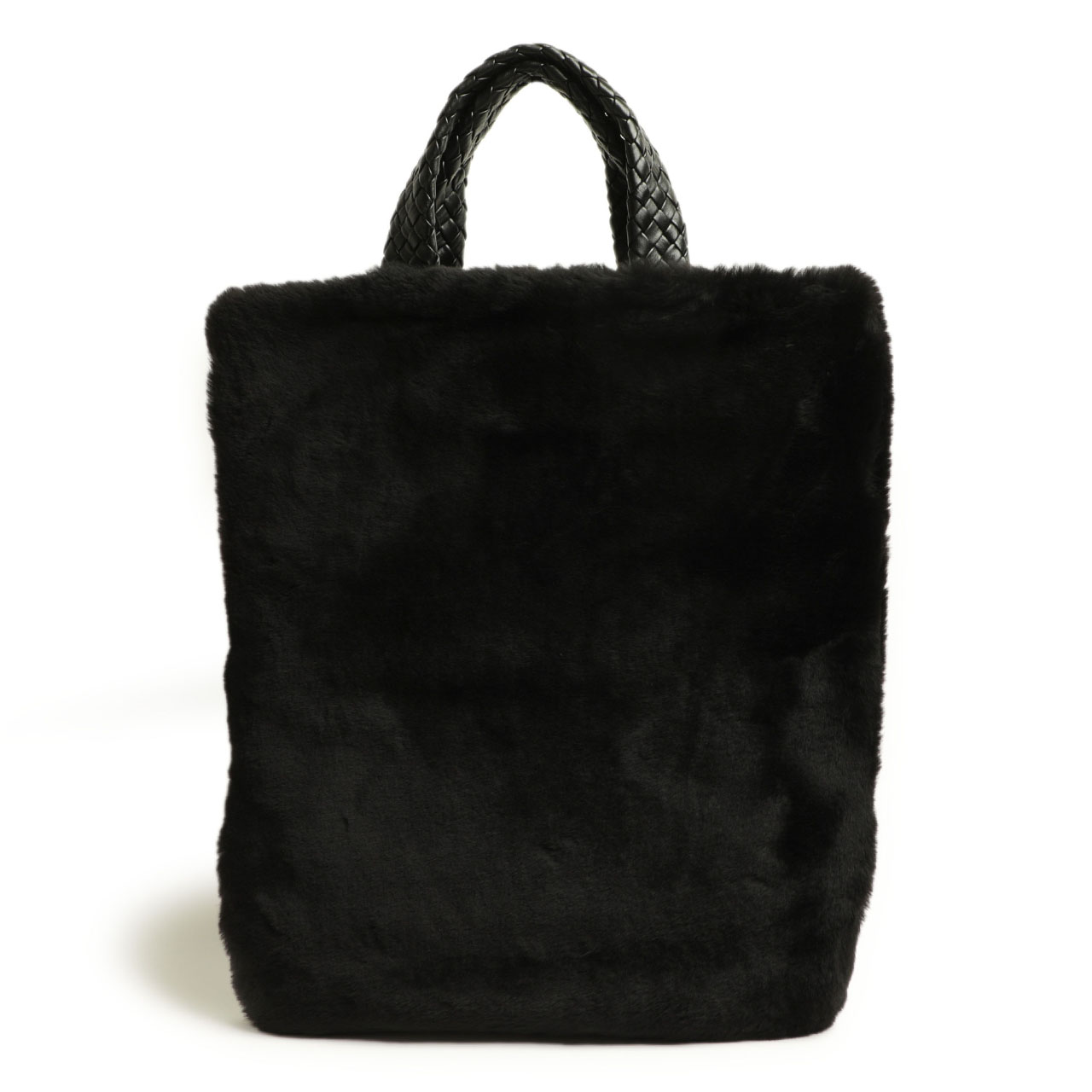 ファロルニ / レザー イントレチャート×ムートン トートバッグ(マチなし)/F3103/NERO ブラック