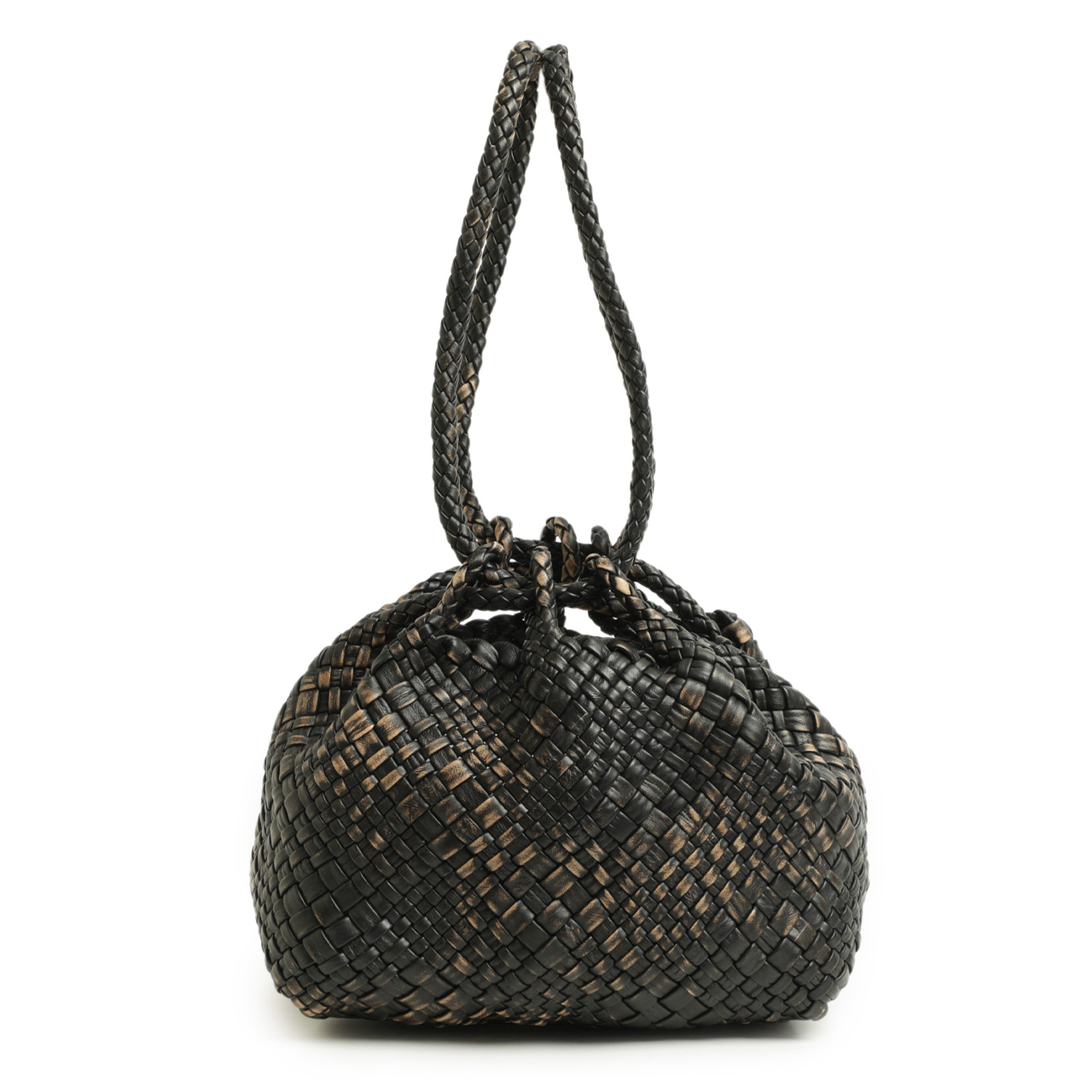 ファロルニ / イントレチャート レザー ハンドペイント 巾着 バッグ / F2056PH / ダークブラウン×ベージュ