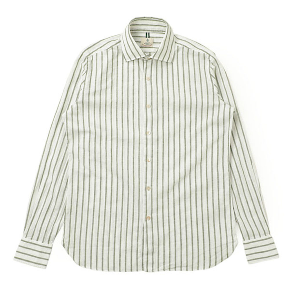 ルイジボレッリ / ストライプ リネン コットン セミワイドカラー シャツ / LUCIANO / SR1659 / グリーン