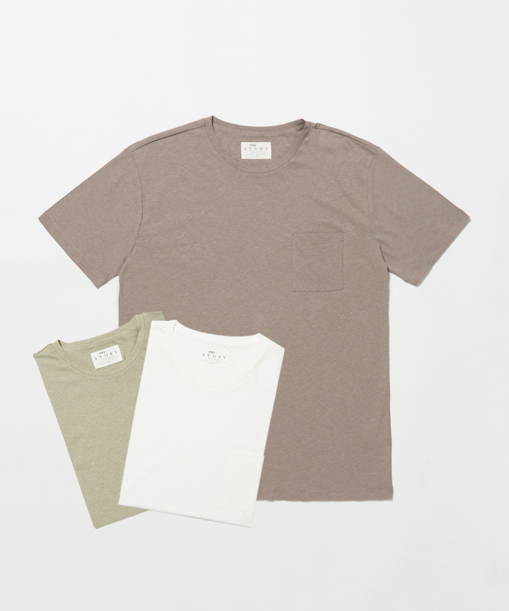 マイストーリー / クルーネックコットンリネンポケットTシャツ/36578