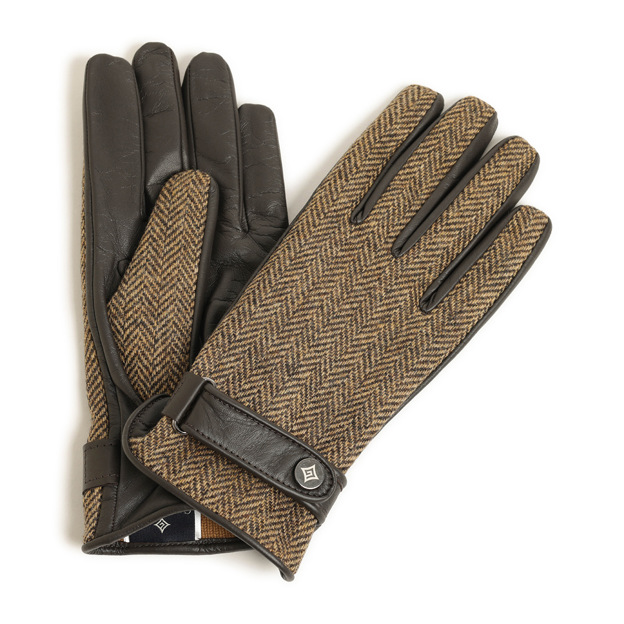 ガーラ グローブス / ヘリンボーン ナッパ レザー カシミヤ ウール シルク ステッチ グローブ / U416-TSC008 / ブラウン
