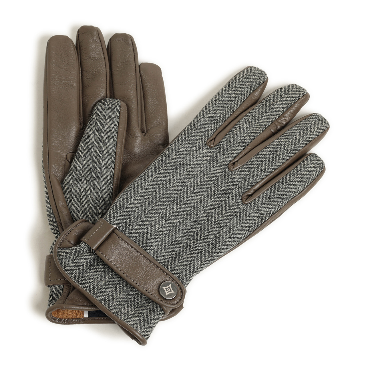 ガーラ グローブス / ヘリンボーン ナッパ レザー カシミヤ ウール シルク ステッチ グローブ / U416-NTSCFAN / グレー