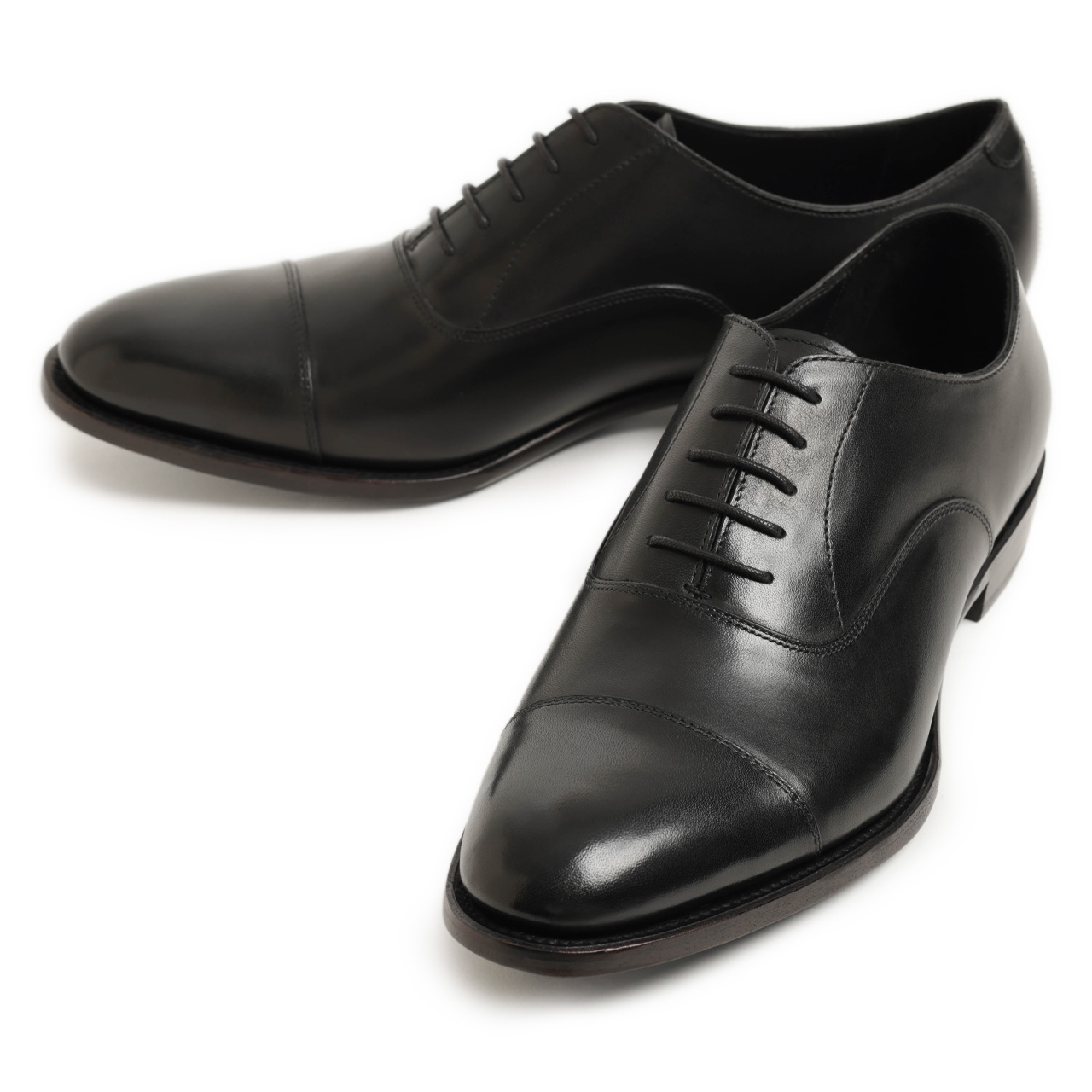 ポルペッタ / カーフレザー ストレートチップ キャップトゥ レースアップ シューズ レザーソール / GB-CapPlainToe / ブラック