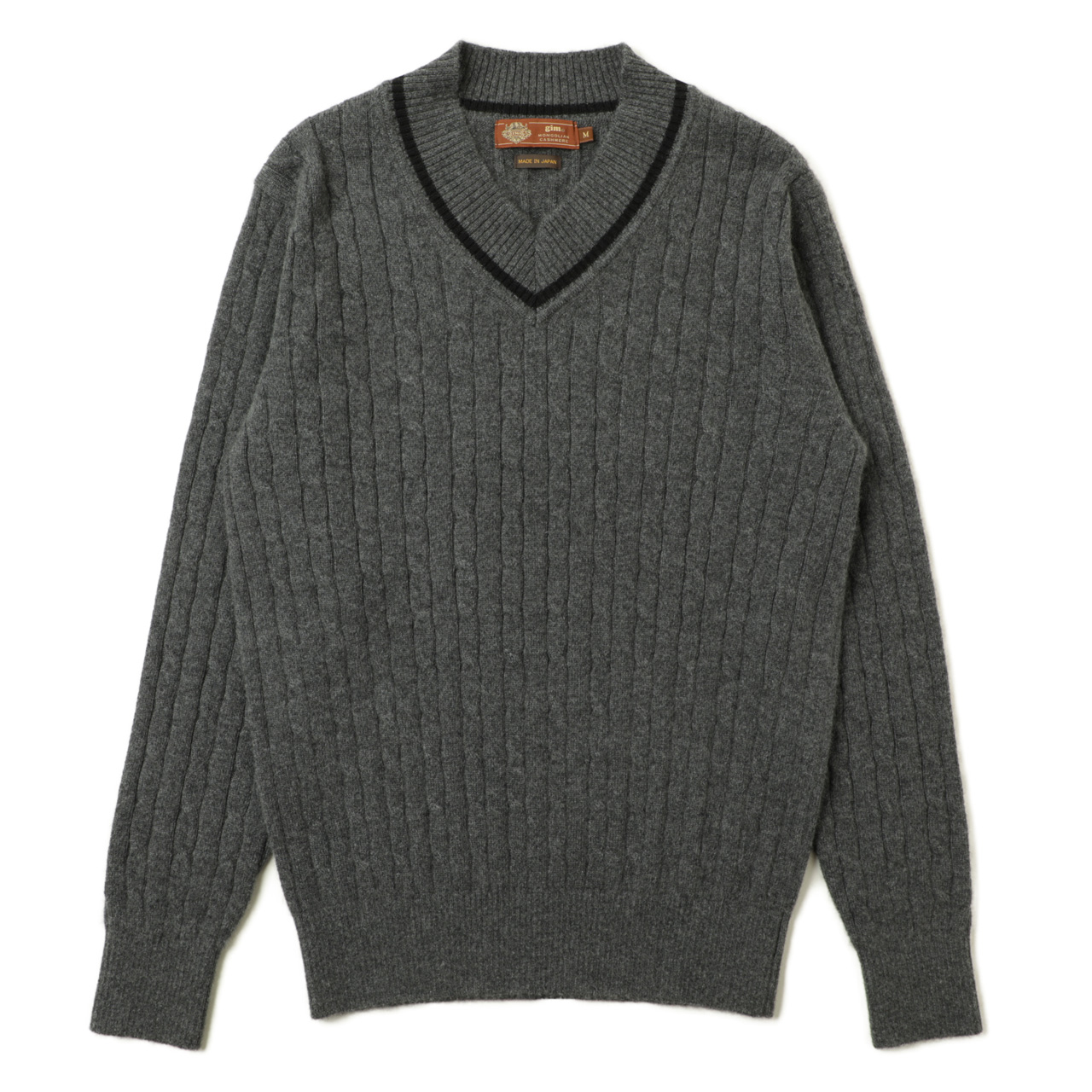 ジム / ハイゲージ チルデン Vネック カシミヤ ケーブル ニット / 22502769 / グレー