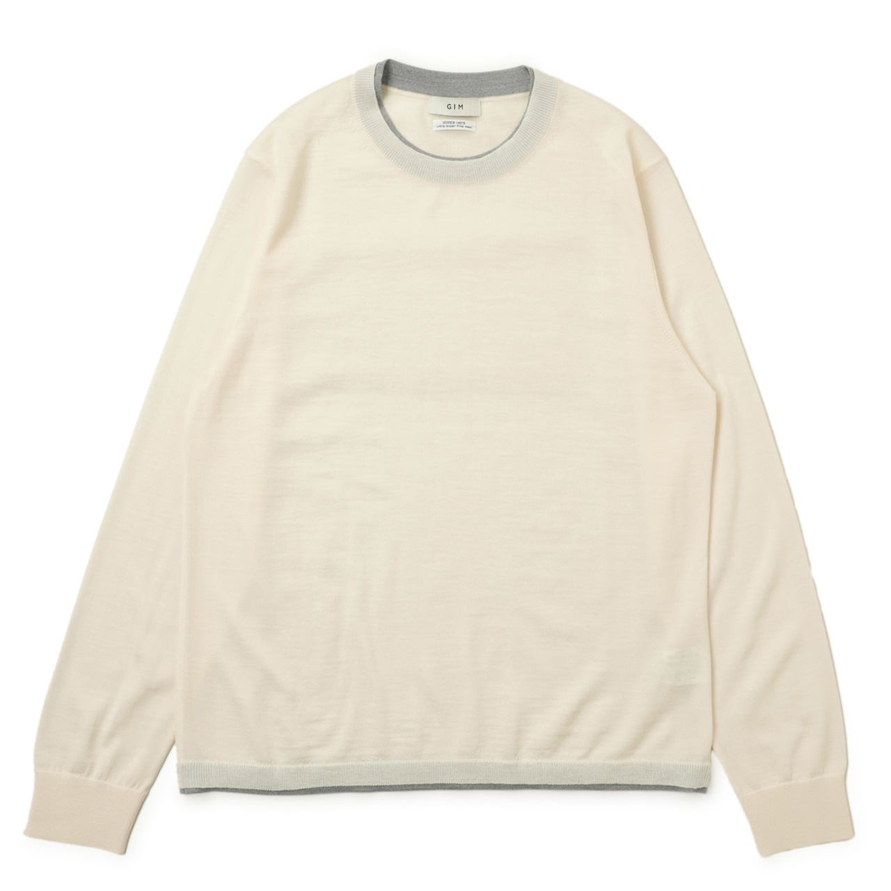 ジム / 【菅原靴店別注】レイヤード風 クルーネック ウルトラスーパーファイン ウール ハイゲージ ニット/ 25504519 / アイボリー