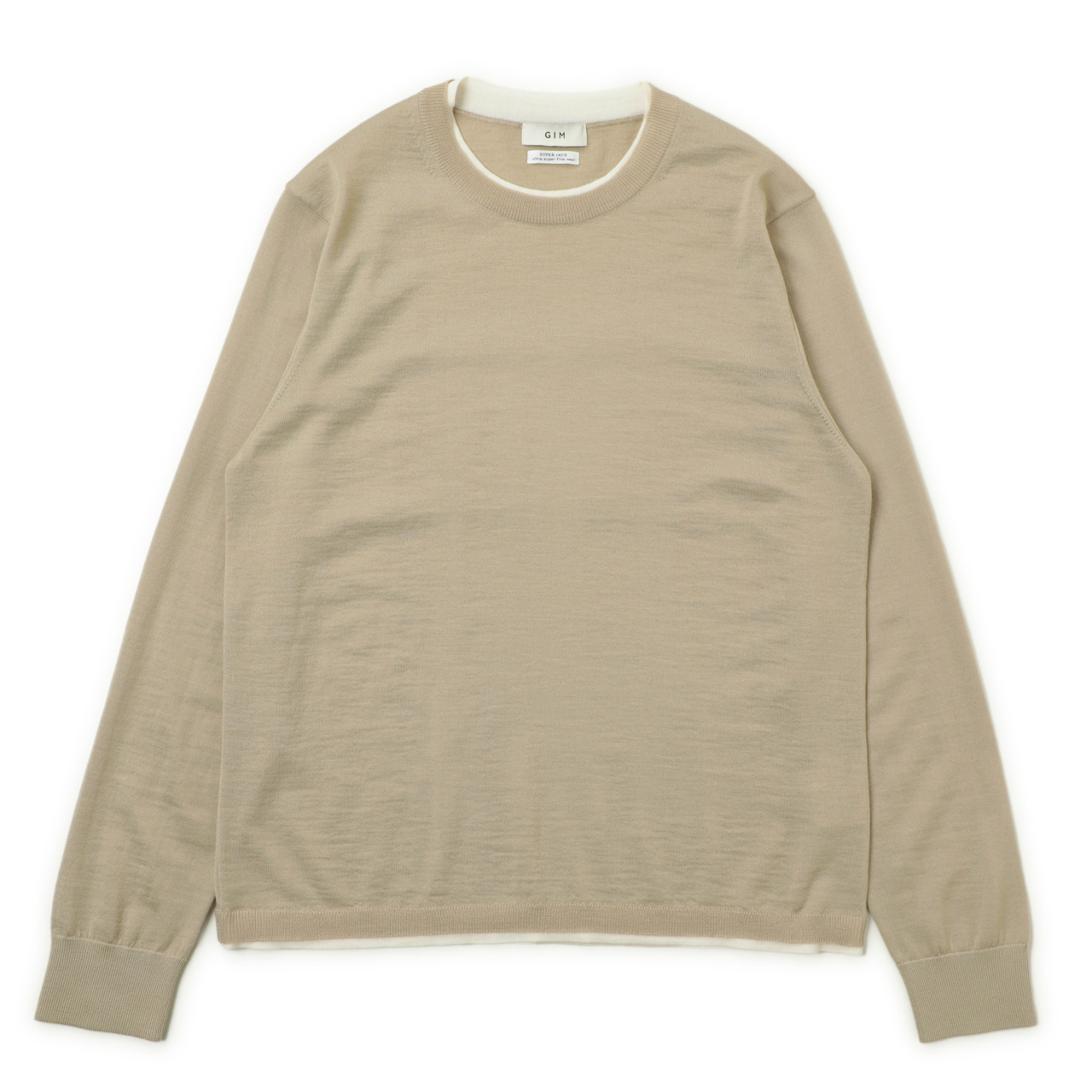 ジム / 【菅原靴店別注】レイヤード風 クルーネック ウルトラスーパーファイン ウール ハイゲージ ニット/ 25504519 / ベージュ