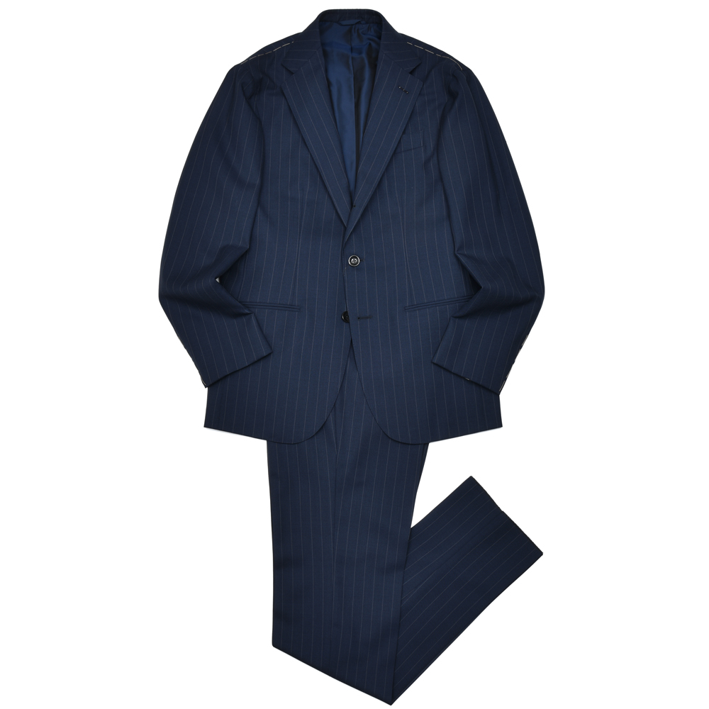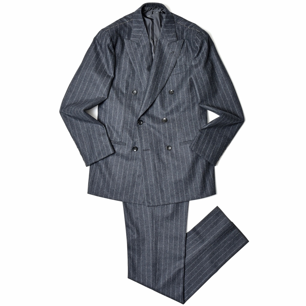 GIANFRANCO BOMMEZZADRI(ジャンフランコ ボメザドリ)ウールフランネルチョークストライプ6B1プリーツダブルスーツ E7026