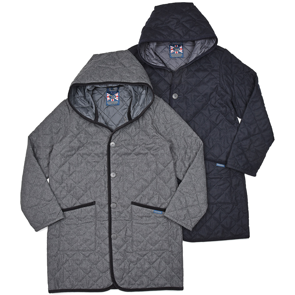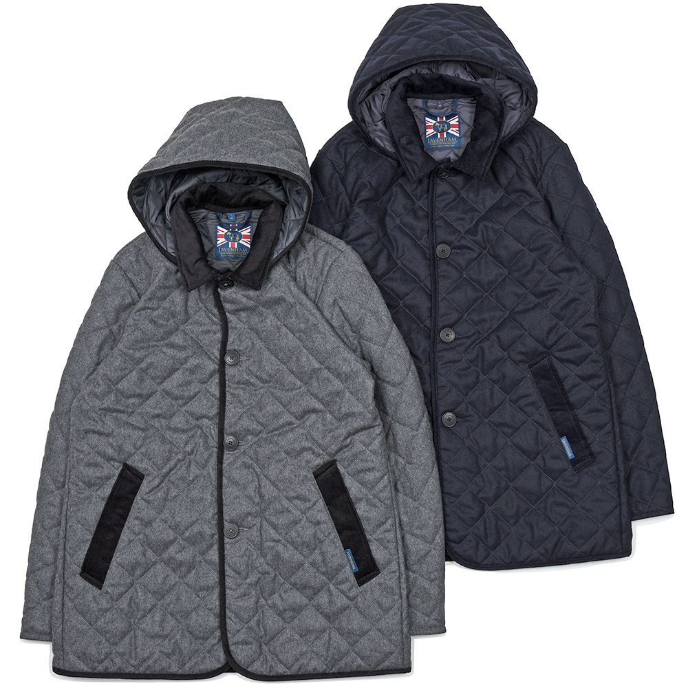LAVENHAM ラベンハムBRUNDON ブランドン ウール ポリエステル キルティング フーデッド シングルコート