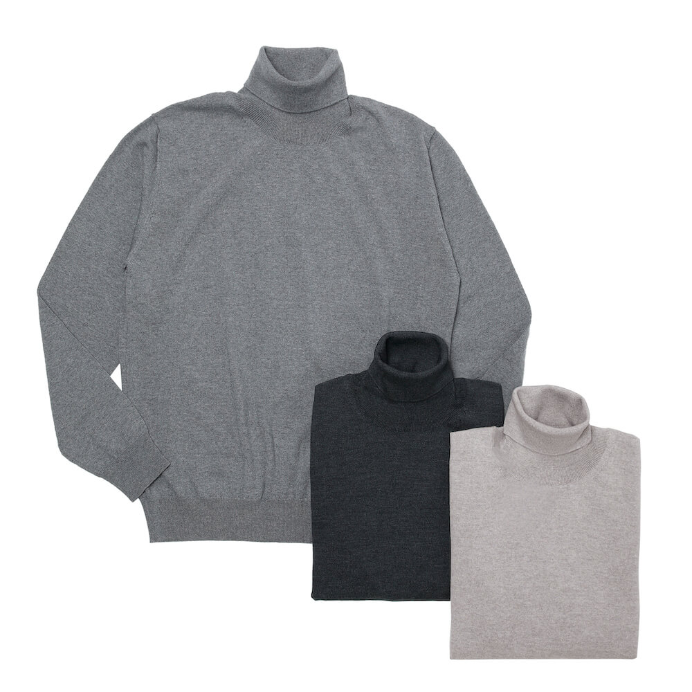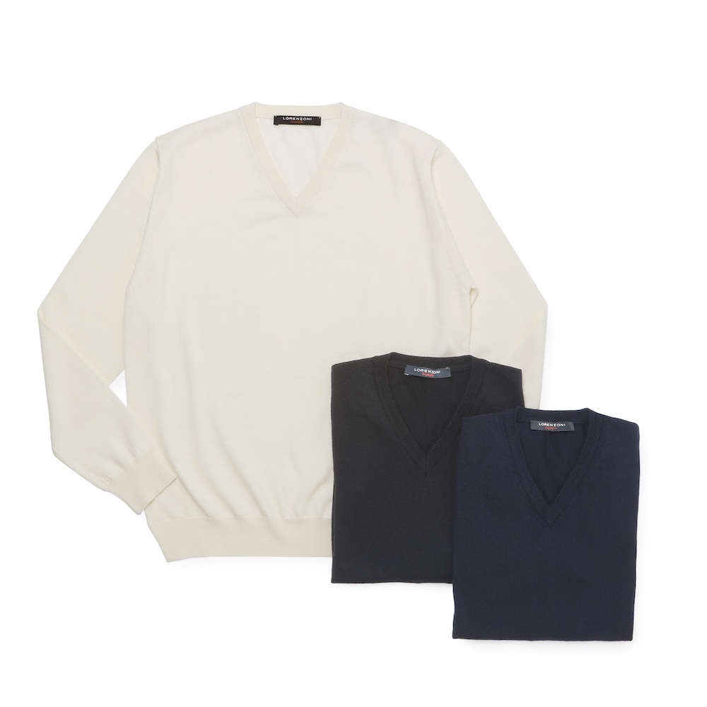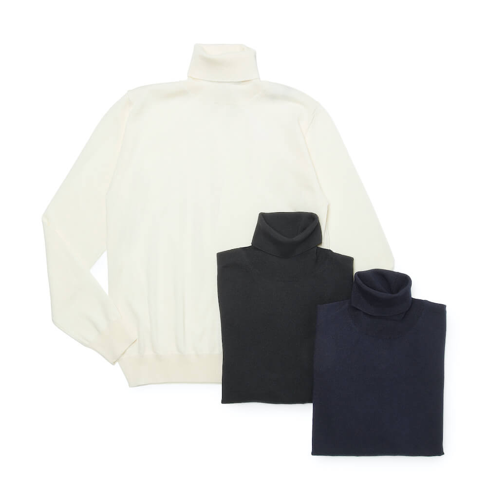 カシミアは主にCariaggi社製、ウールやシルクはZegna Baruffa社製のものを主に使用。特にZegna Baruffa社とは強固な繋がりを築いており、共同研究でメリノウールの三子撚りを開発しています。これは同社のエクスクルーシブヤーンであり、毛玉が非常に出来にくい、伸縮性に富んでいる、シワになりにくい、またデリケートコースでの洗濯機の使用が可能という特徴があります。