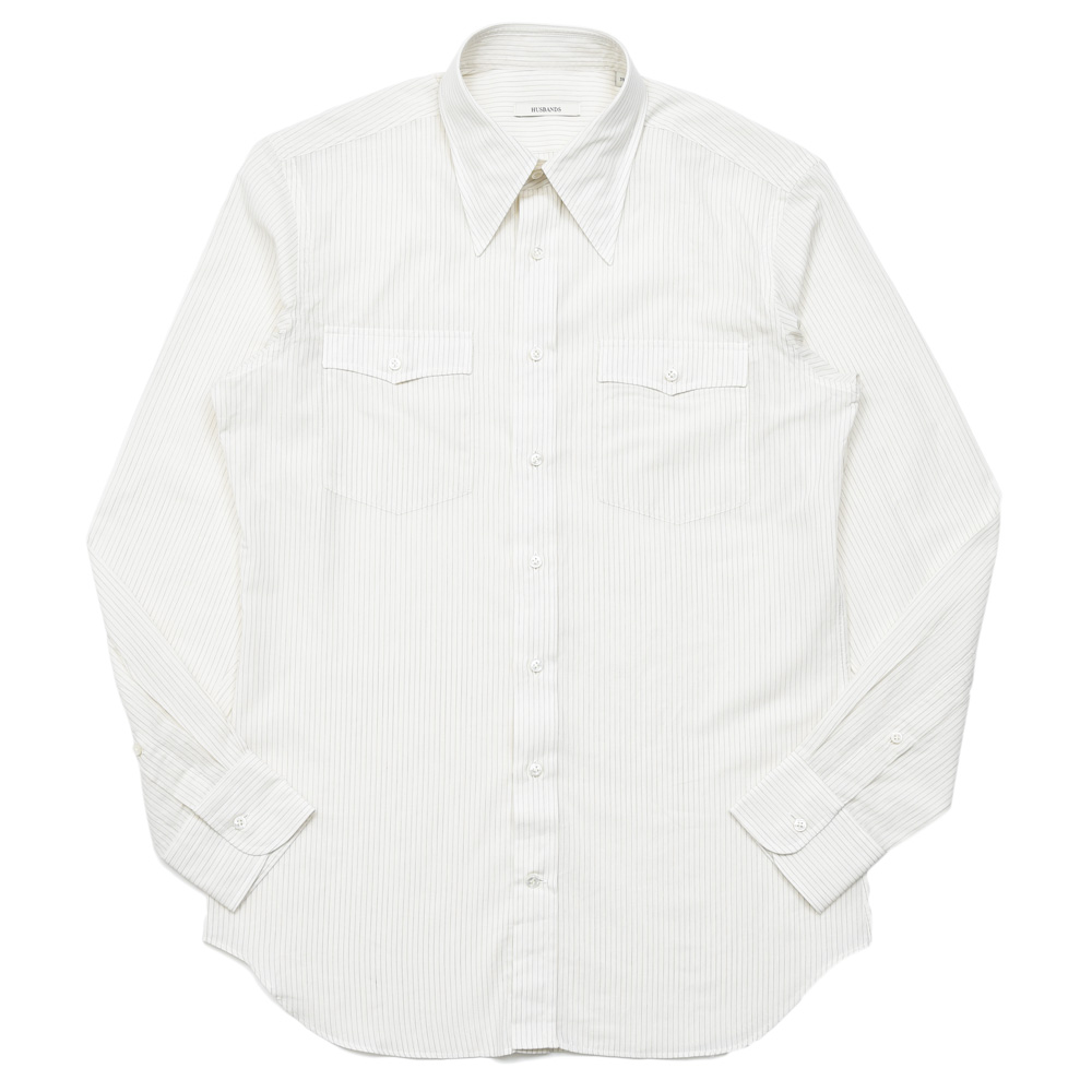 HUSBANDS(ハズバンズ)コットンストライプワイドカラーシャツ H12E CBCTL CONCWT