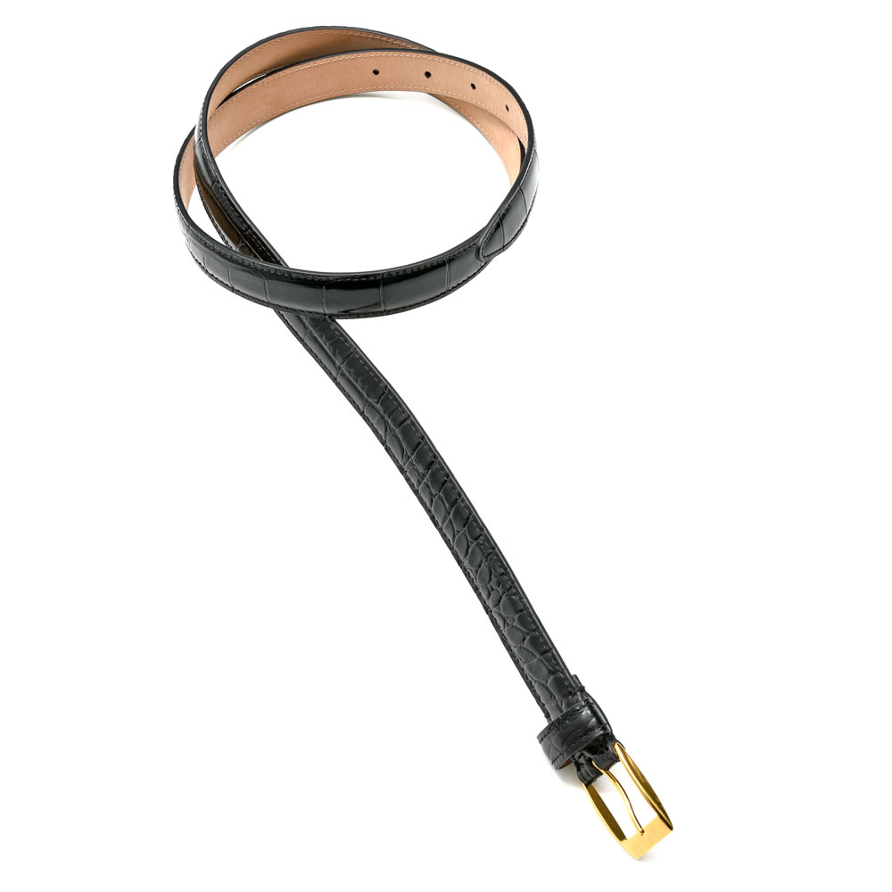 HUSBANDS(ハズバンズ)カーフクロコダイルエンボスナローベルト HES CFBR