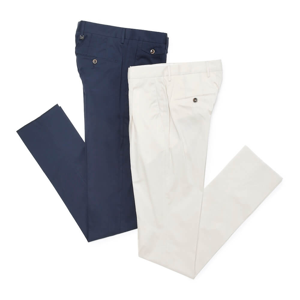 別注は型から行う場合もありますが、多くの場合は細かな部分に別注をしています。例えば、クルーネックのリブ幅を細くしたり、ジャケットのボタン位置を変えたり、ポケットを無くしたり、といった具合。