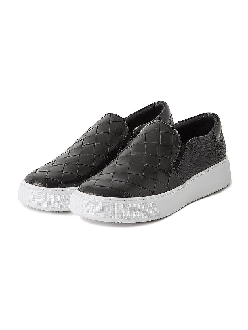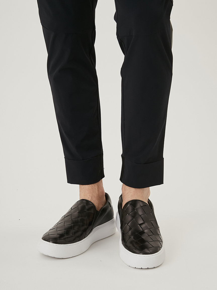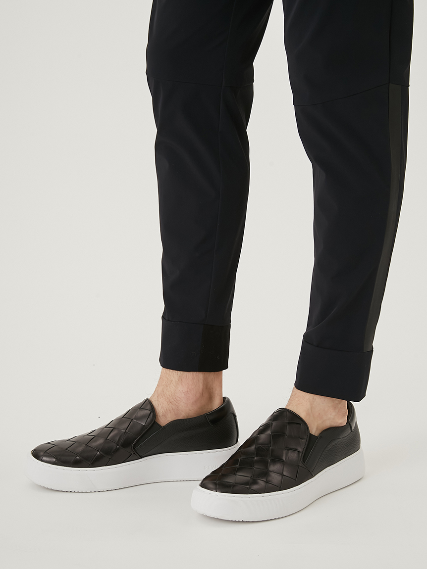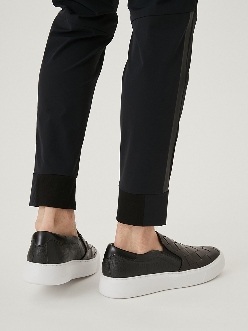 スタイリッシュなスリッポンに合わせたシャープな印象のブラックベースのライナーカラー