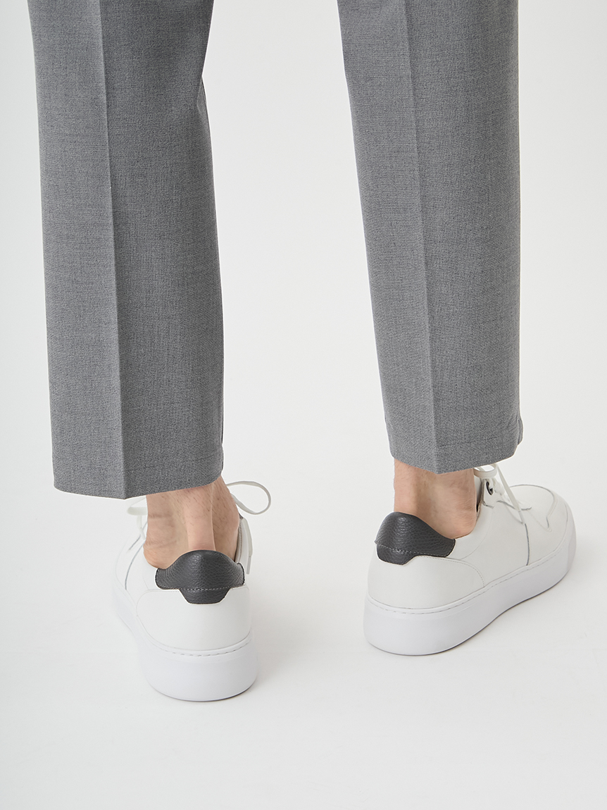 アッパーにはヨーロッパのラグジュアリーブランドでもシューズ用として実績のある、きめ細やかな表面としっかりとしたハリが特徴のイタリアンスムースレザーを採用。