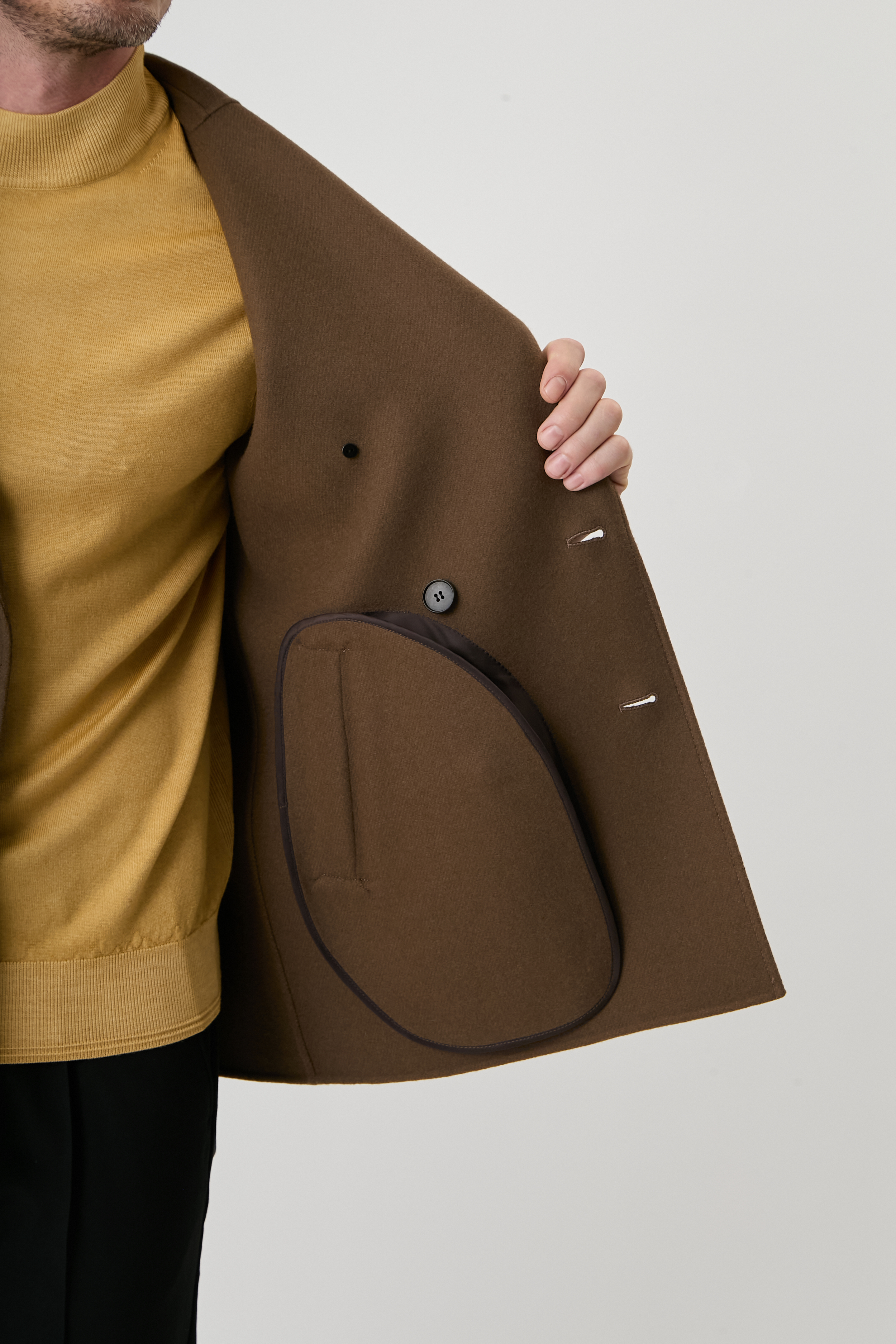 リバー仕立てで縫製の無駄を省いたシンプルなジャケットコートに仕上がり軽さだけでなく、暖かさも持ち合わせた現代の温暖気候にあったアウターとなっています。