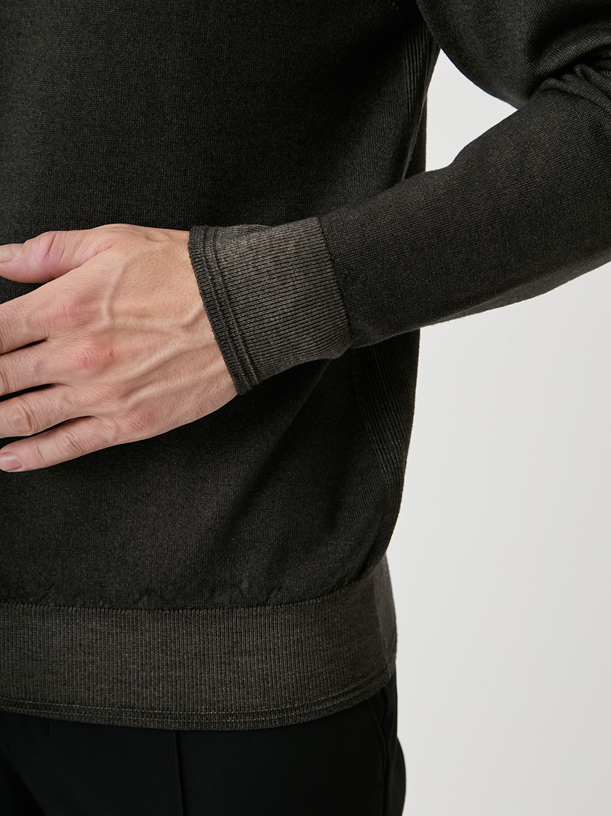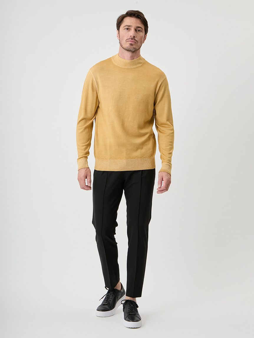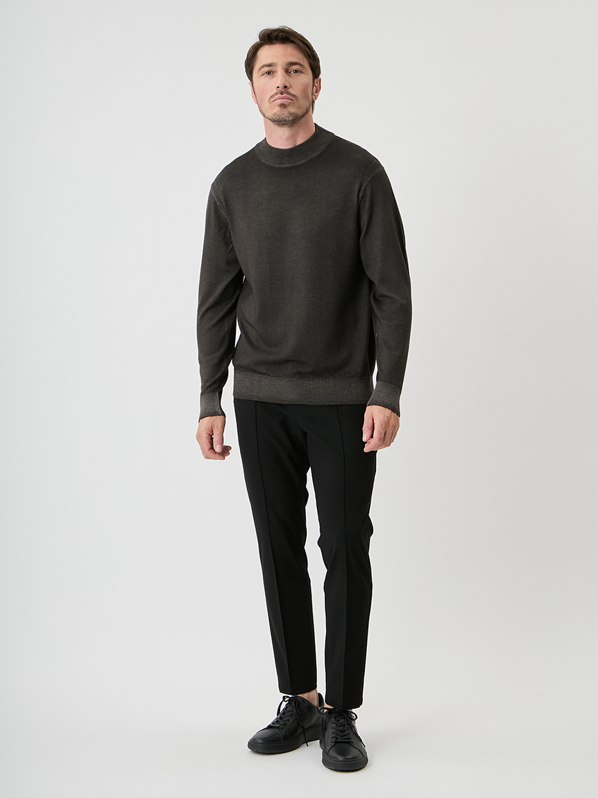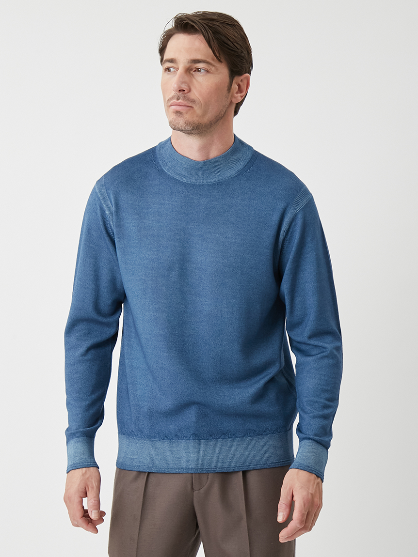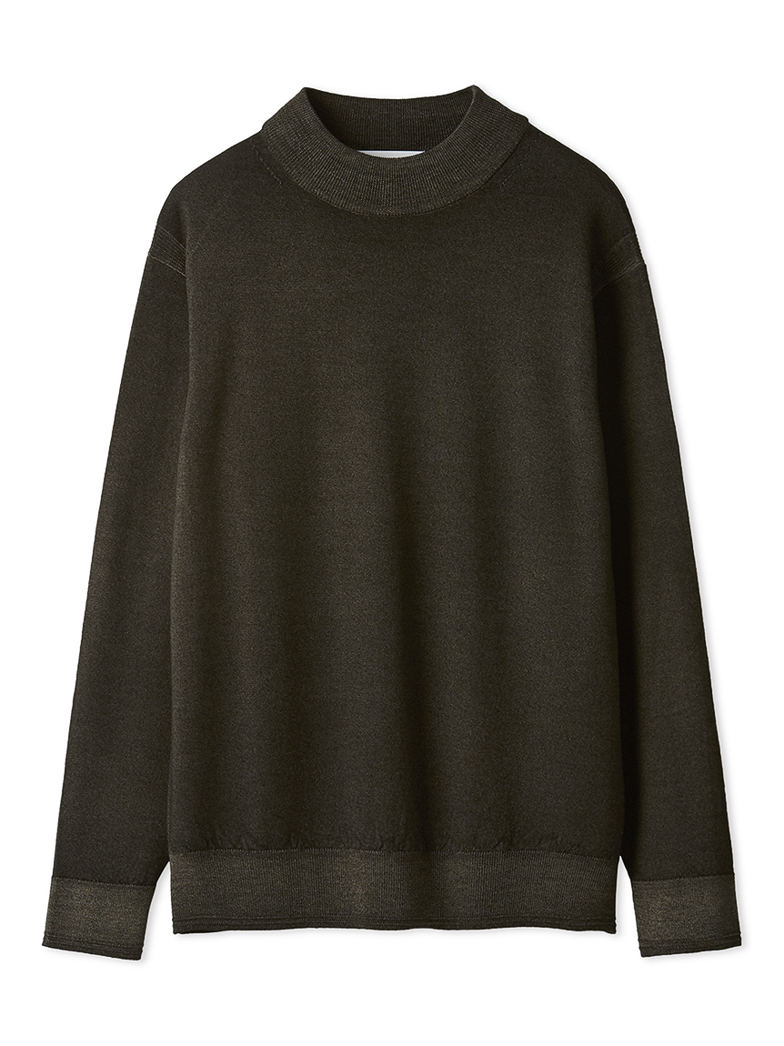 ジャケットにも合わせられるようにコンパクトな設計にし、モックネックで衿回りをカバーしています。