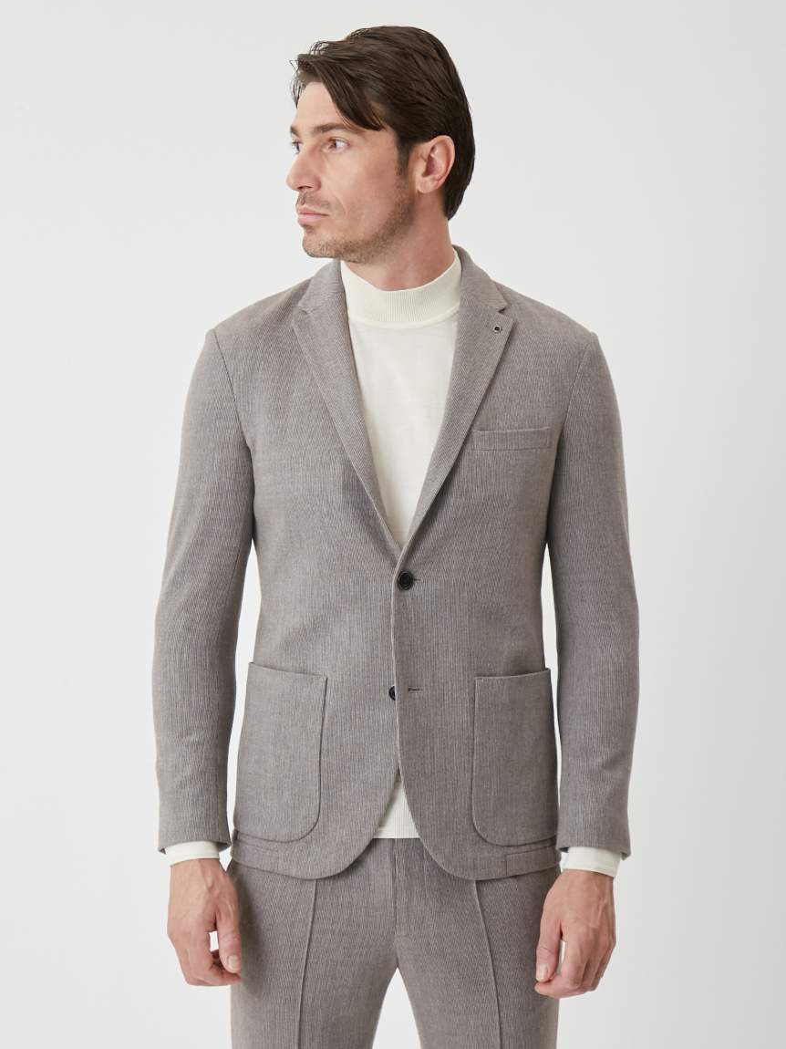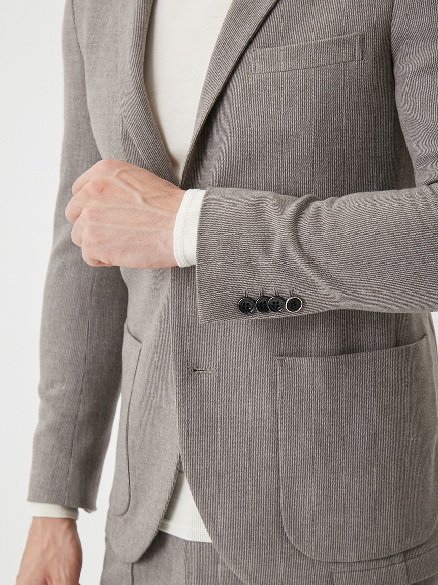 起毛感のある細ストライプが特徴のセットアップ