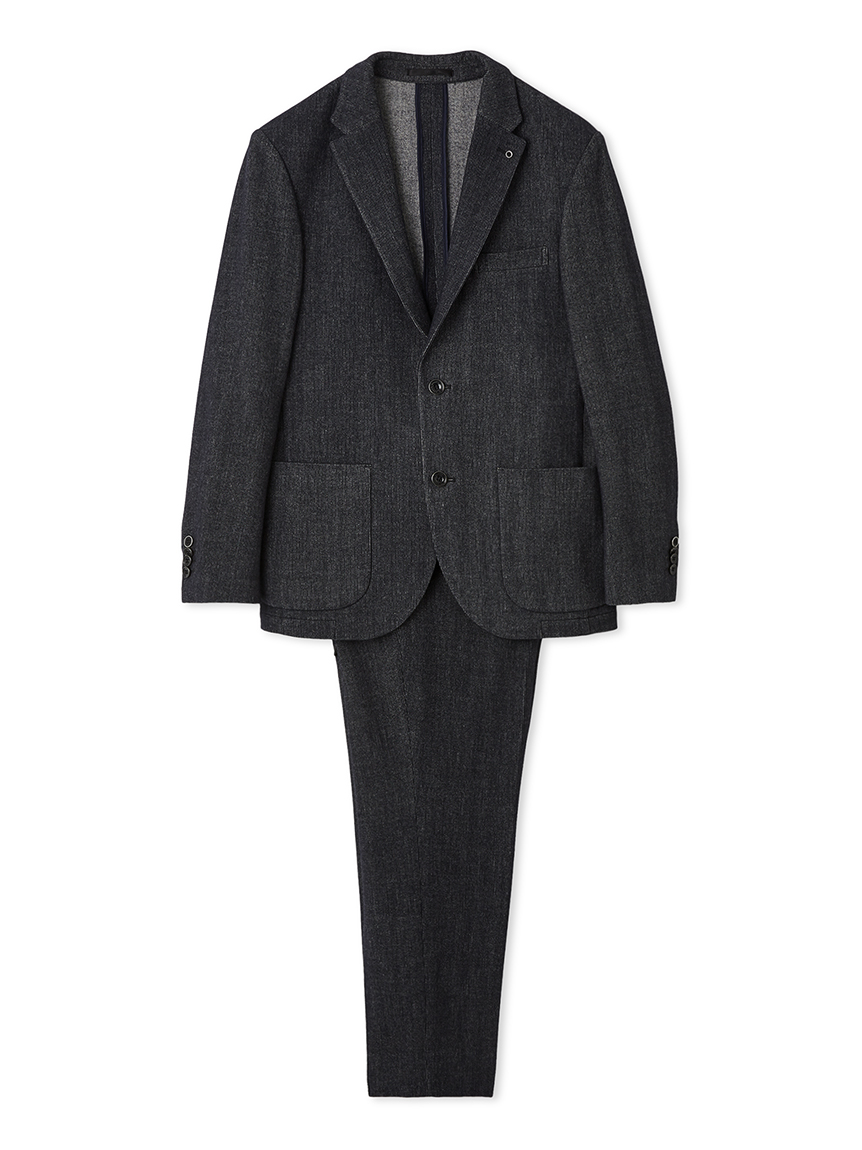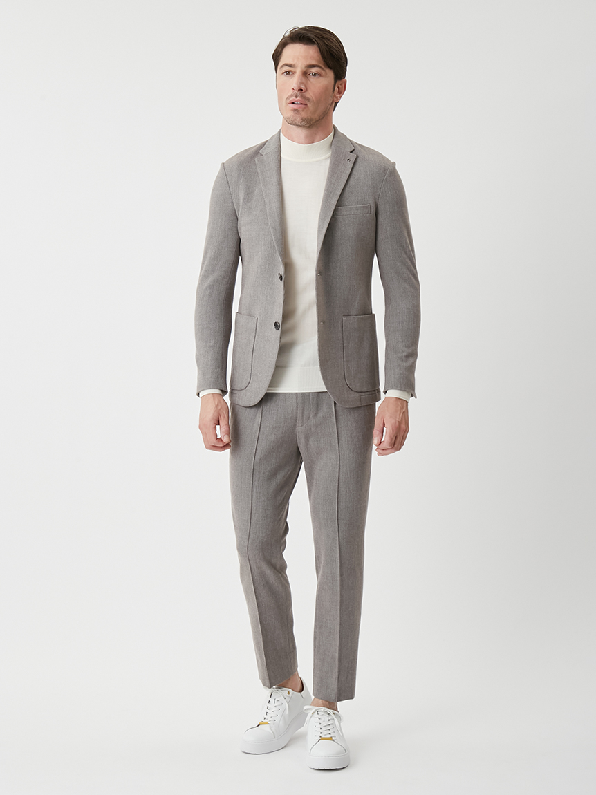 上品な起毛ストライプ素材で仕立てたセットアップ。