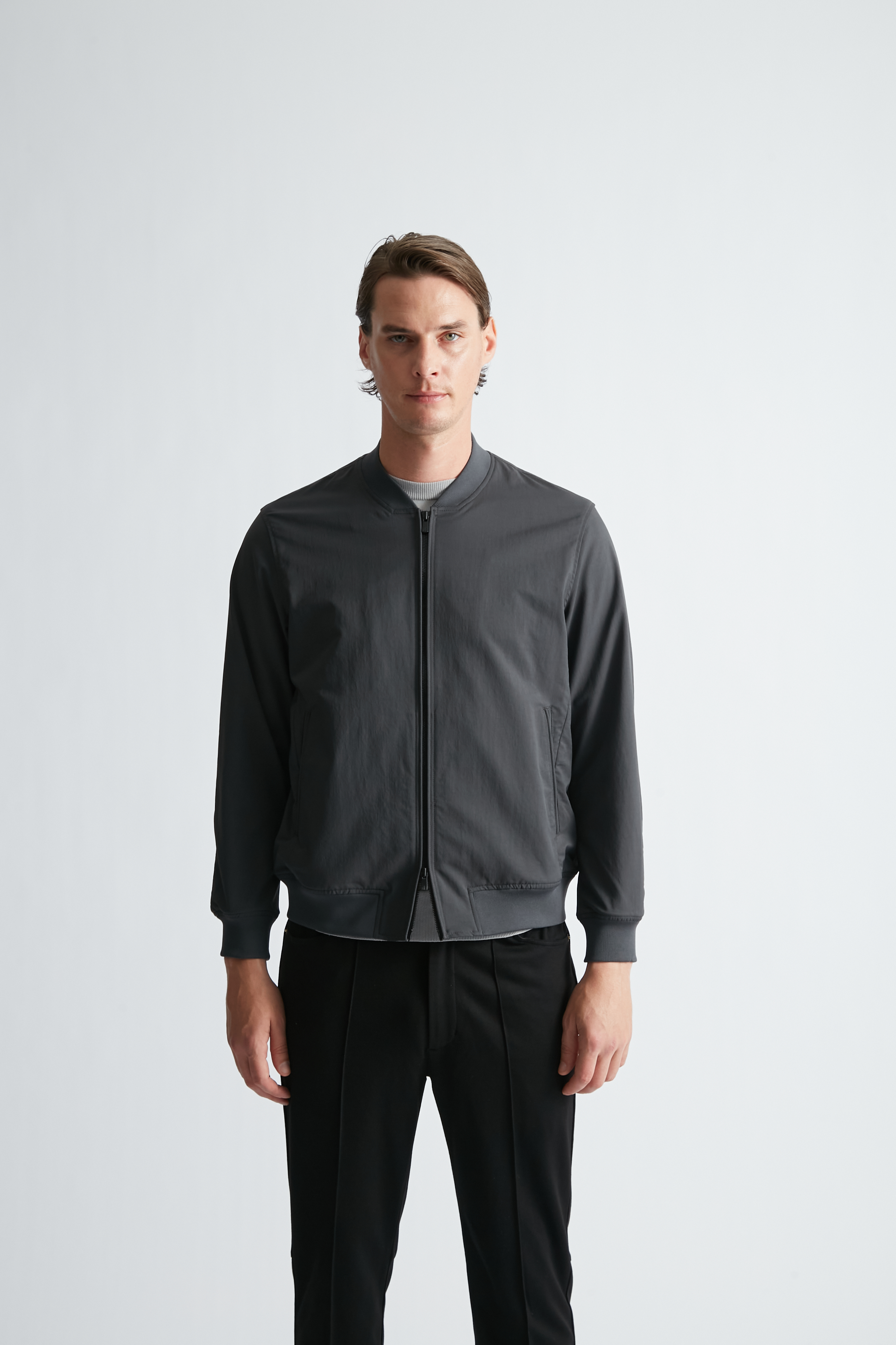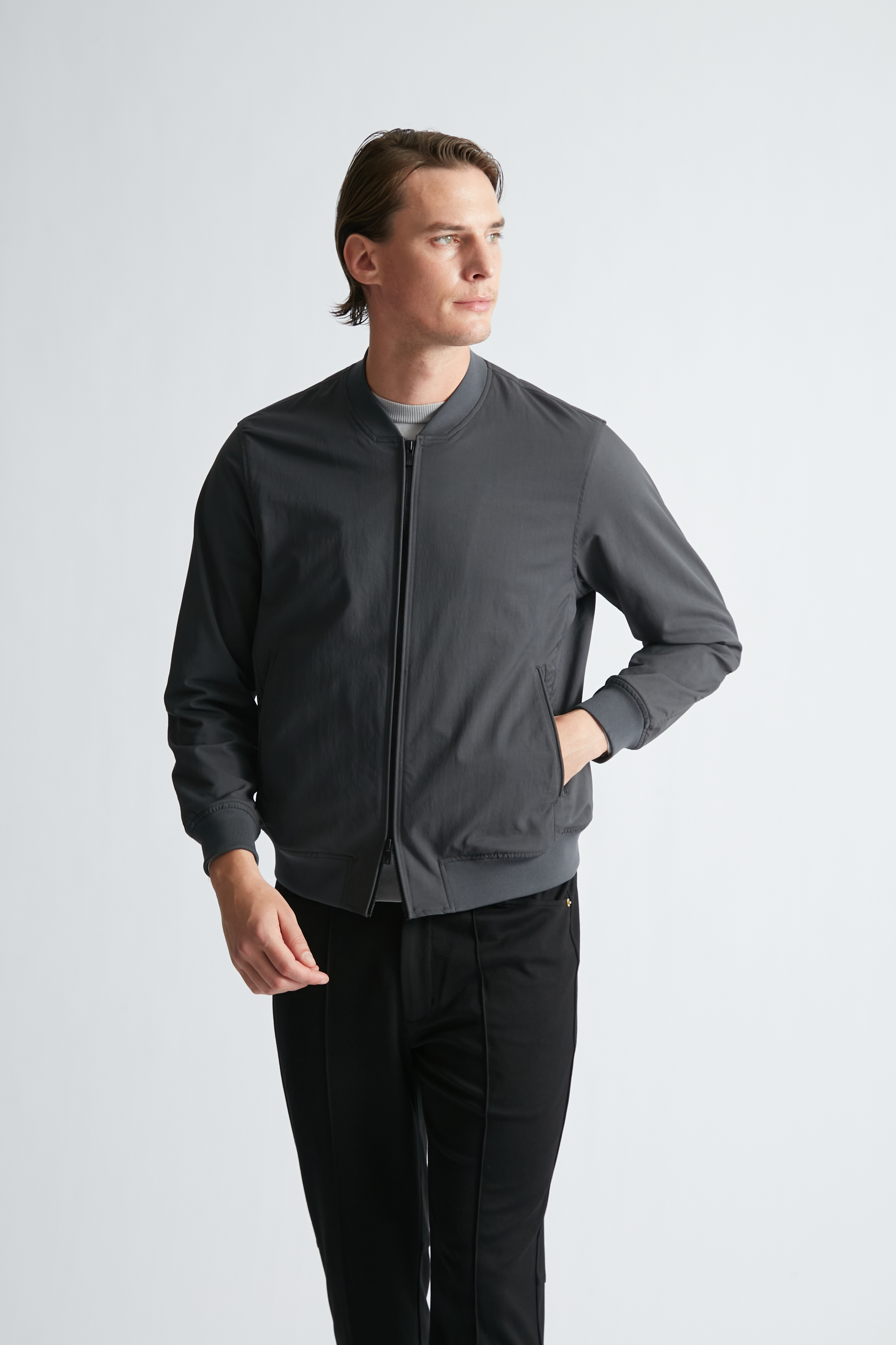 ヴィンテージ調の表情感が魅力の、ストレッチ性を兼ね備えたナイロンMA-1。