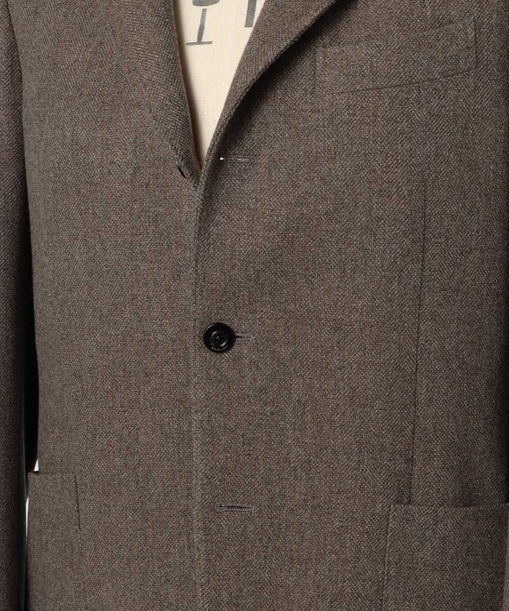 ヘリテージ感を全面的に感じさせない、さりげないヘリンボーンパターンが程よくスパイスになっている1着です。