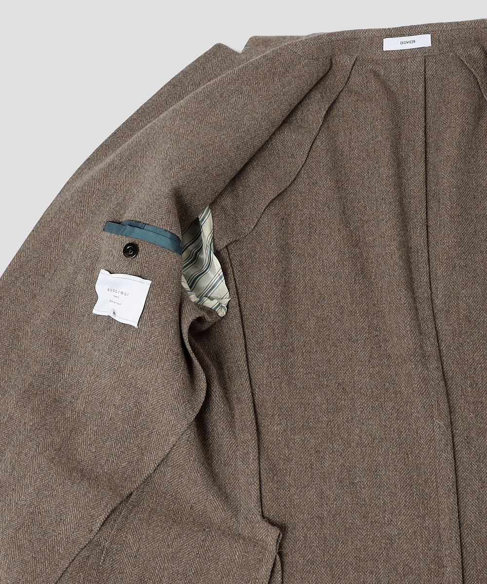 モデル"DOVER(ドーバー)"は、肩パッドや芯地といった副資材を極力省いた仕立てのアンコンジャケット。
