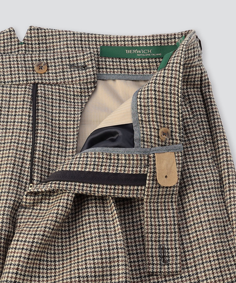 英国を代表するチェックパターンの1つ、ガンクラブチェックが目を惹く1本。