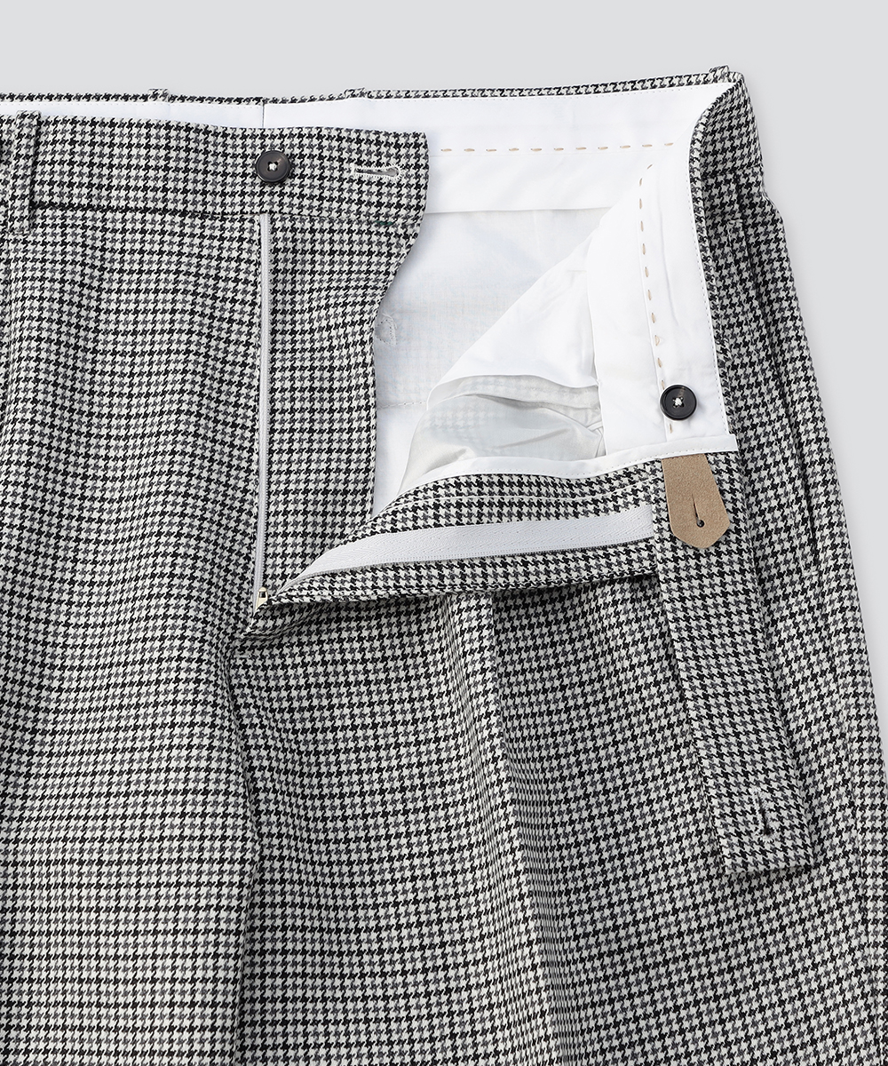 英国を代表するチェックパターンの1つ、ガンクラブチェックが目を惹く1本。コーディネートに奥行きをプラスします。