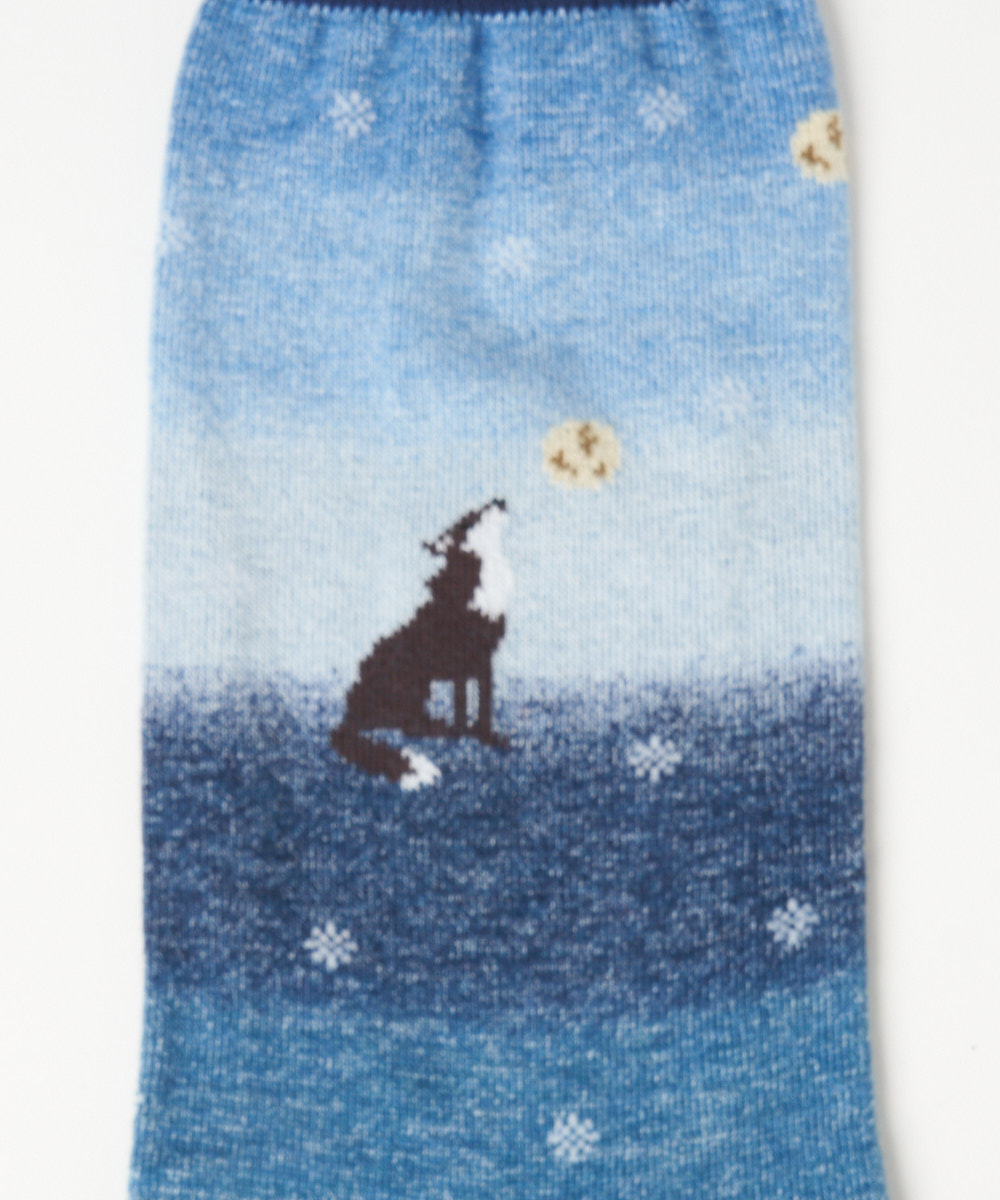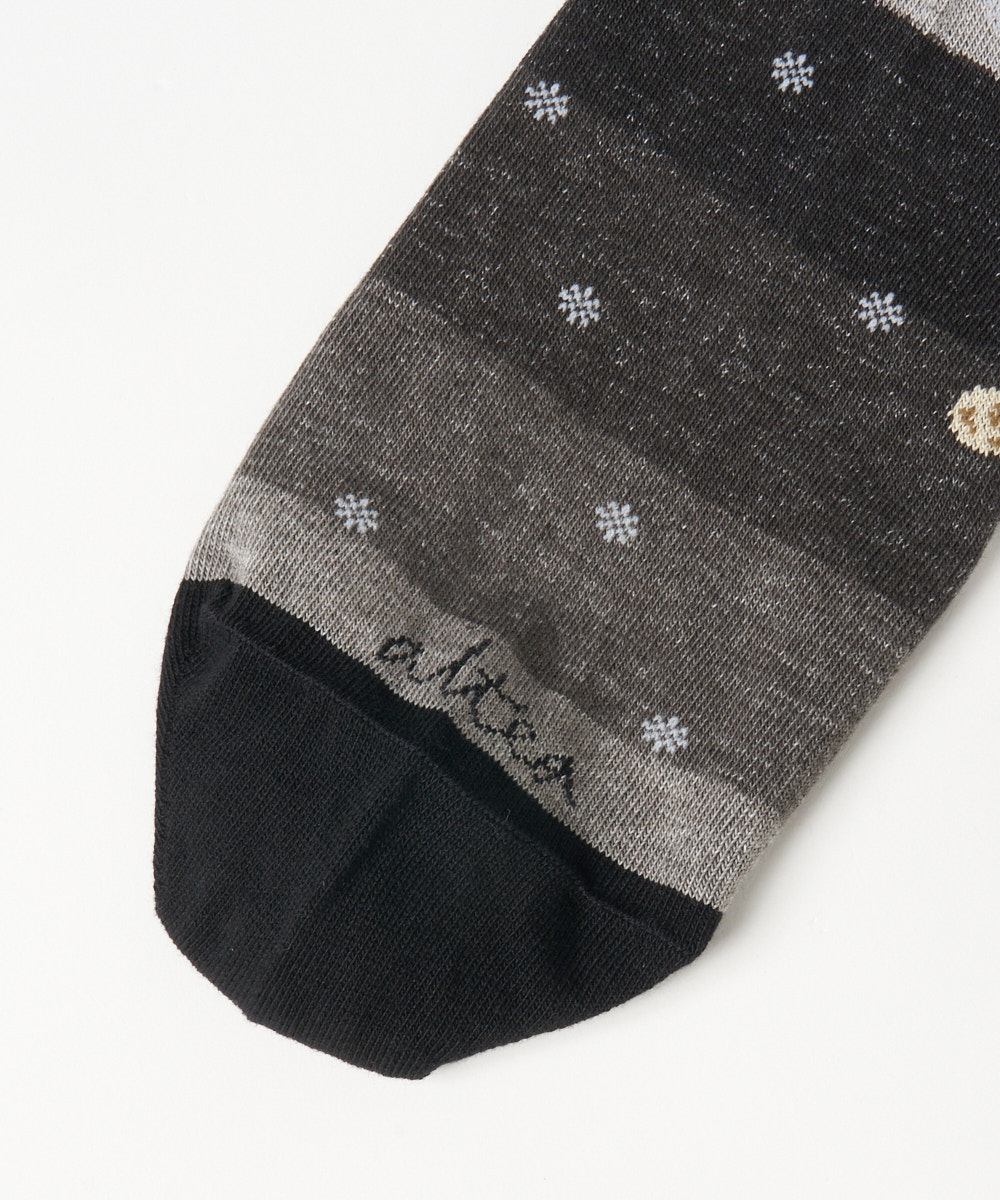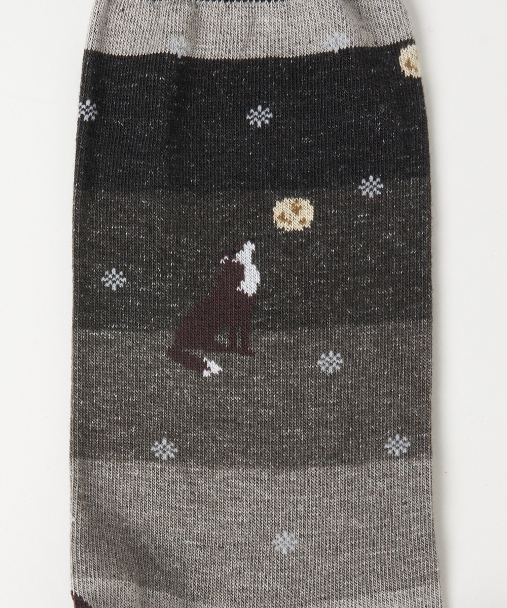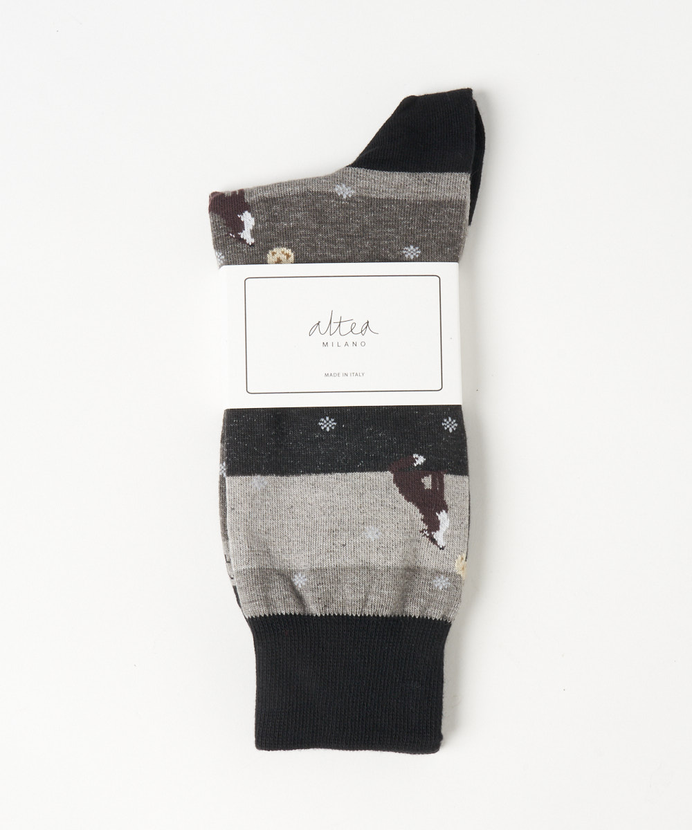 ウルフ柄が目を惹くユニークなデザインは足元からコーディネートの幅を広げてくれる大人のソックスとなっております。