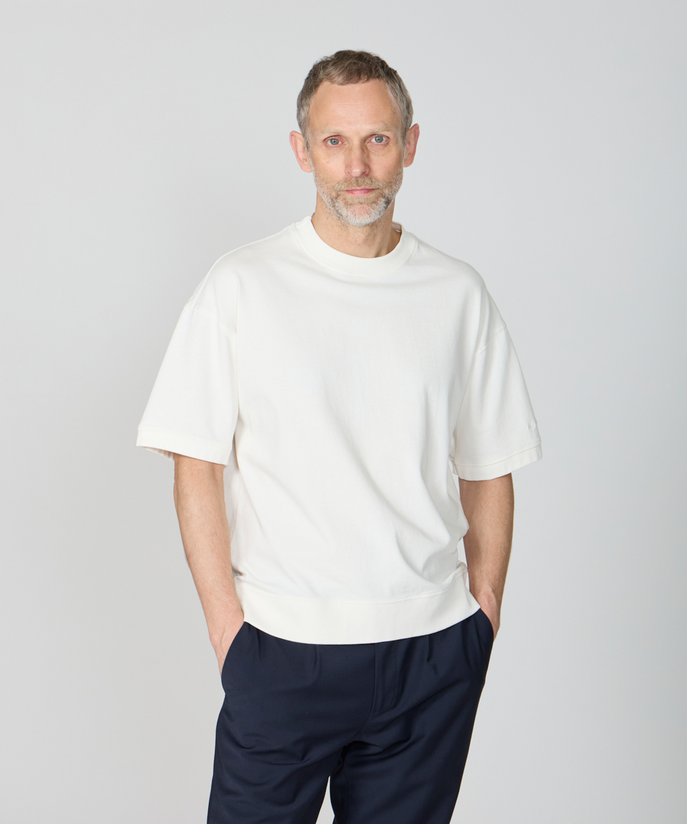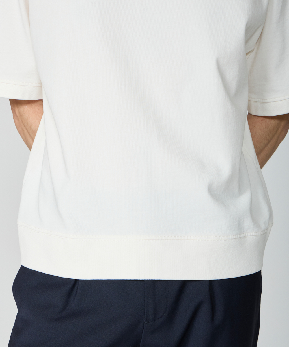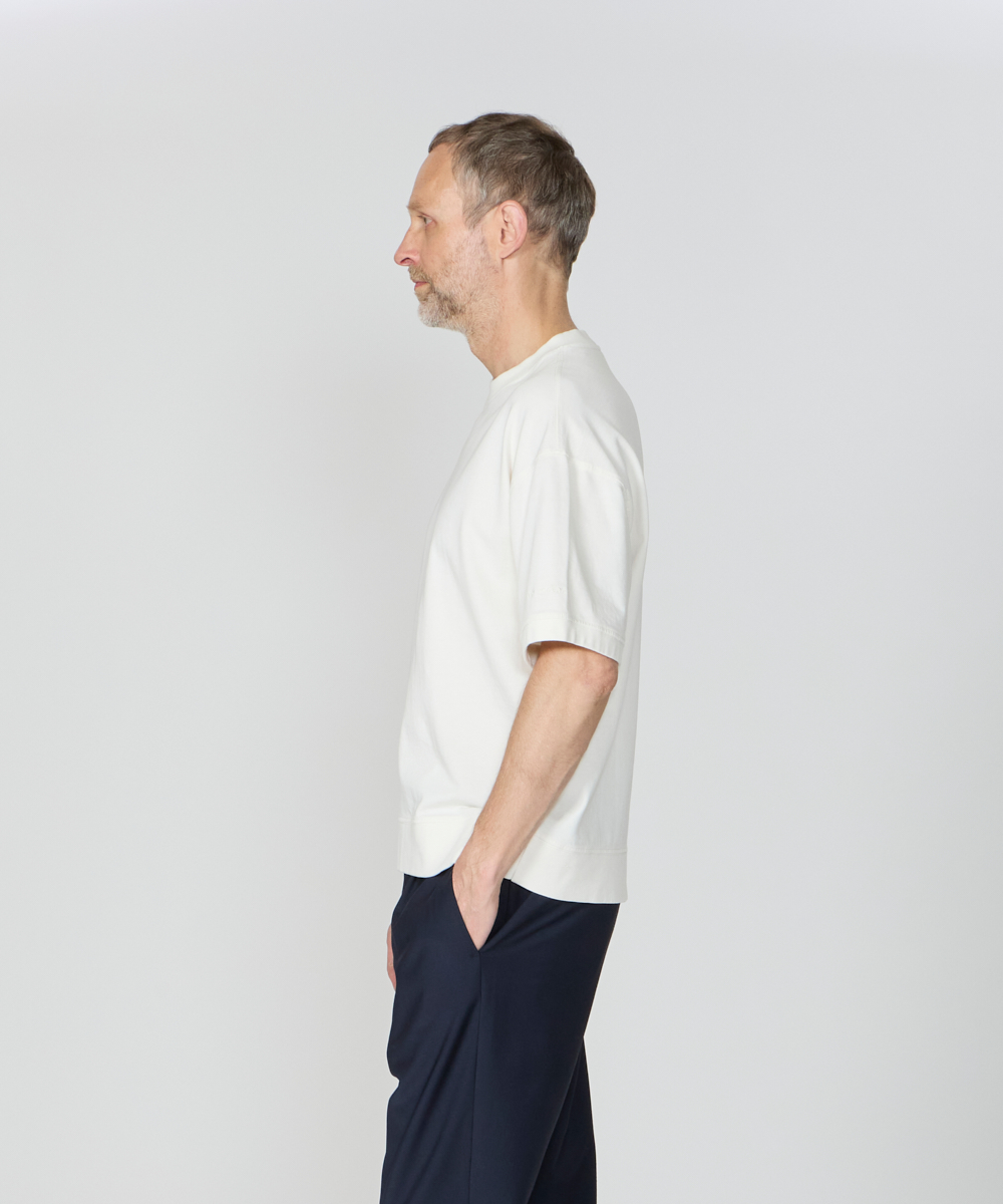 程よく詰まっているネック回りと絶妙なバランスで設計されたリラックスシルエットが特徴です。