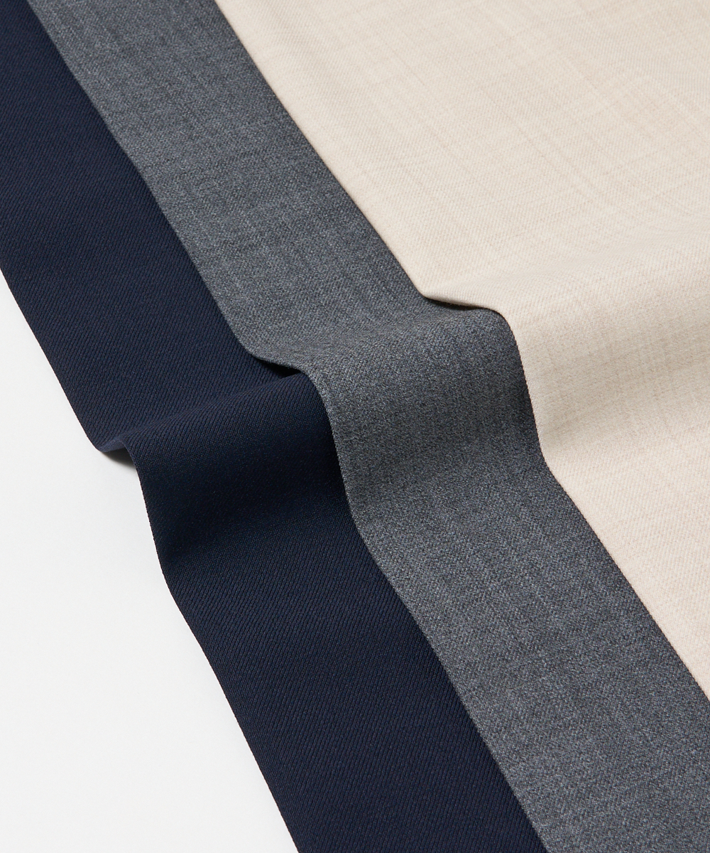 今季25AWシーズンより新たに登場した、適度な厚みと伸縮性を兼ね備えたストレッチウールポリエステル生地を採用。パンツとして十分な強度を確保しながらも、柔らかなタッチで快適な着用感を実現しています。