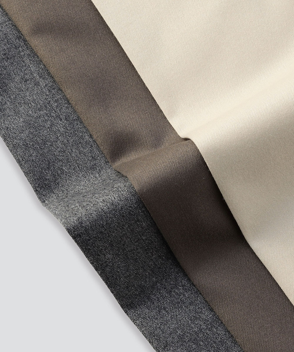 生地には、イタリアを代表する老舗高級テキスタイルメーカー VITALE BARBERIS CANONICO(ヴィターレ・バルベリス・カノニコ) 社のサキソニー素材を採用。しなやかなタッチと控えめながら上品な光沢感を備えた、秋冬シーズンに最適なファブリックです。