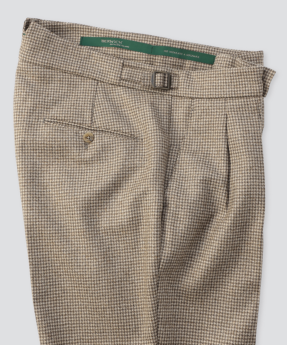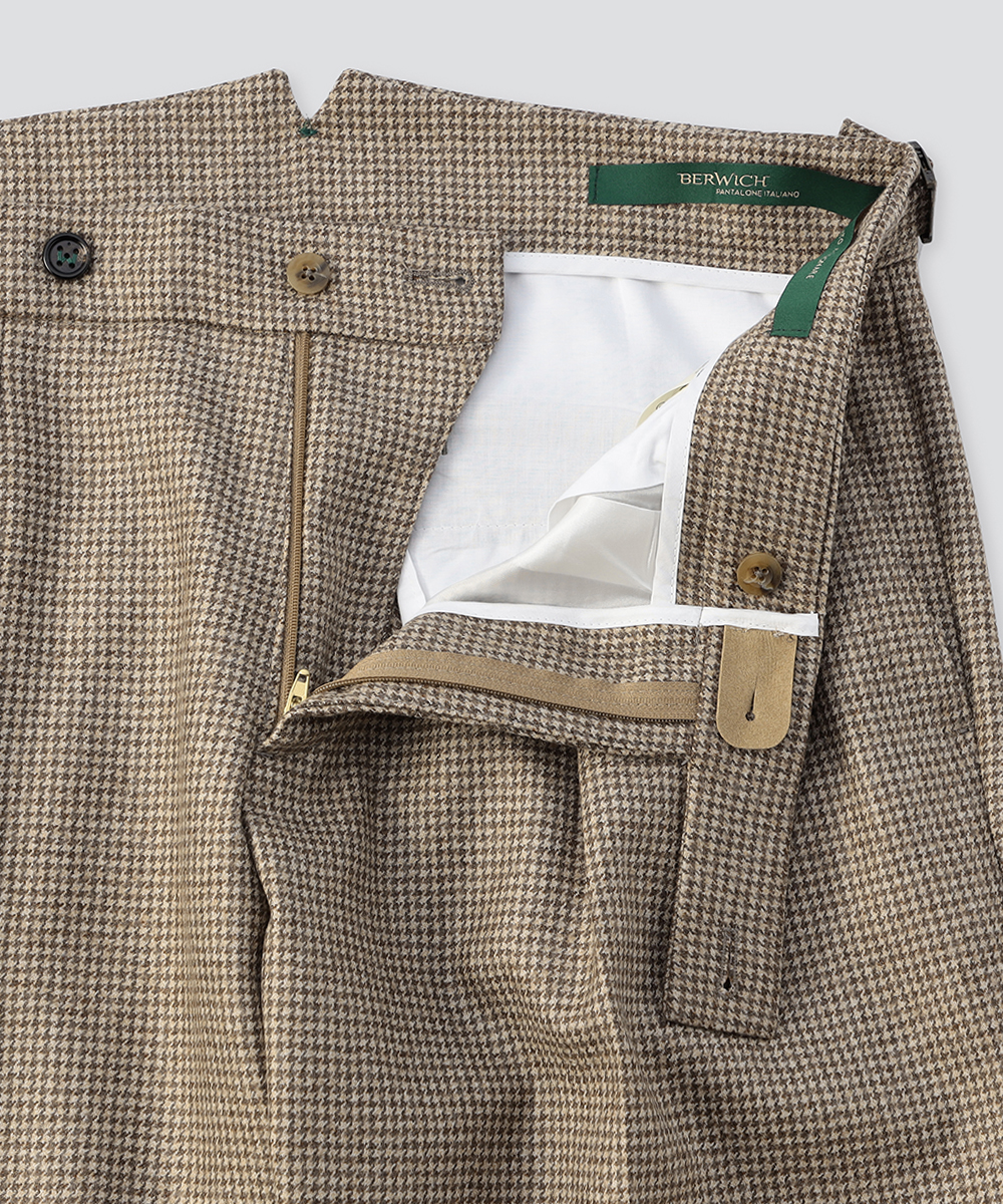 上品なガンクラブチェック柄が、装いにクラシカルな深みと品格を添えてくれ、落ち着いたチェック柄と、BERWICHらしい洗練されたシルエットが融合した本モデルは、大人の装いを格上げしてくれる一本です。