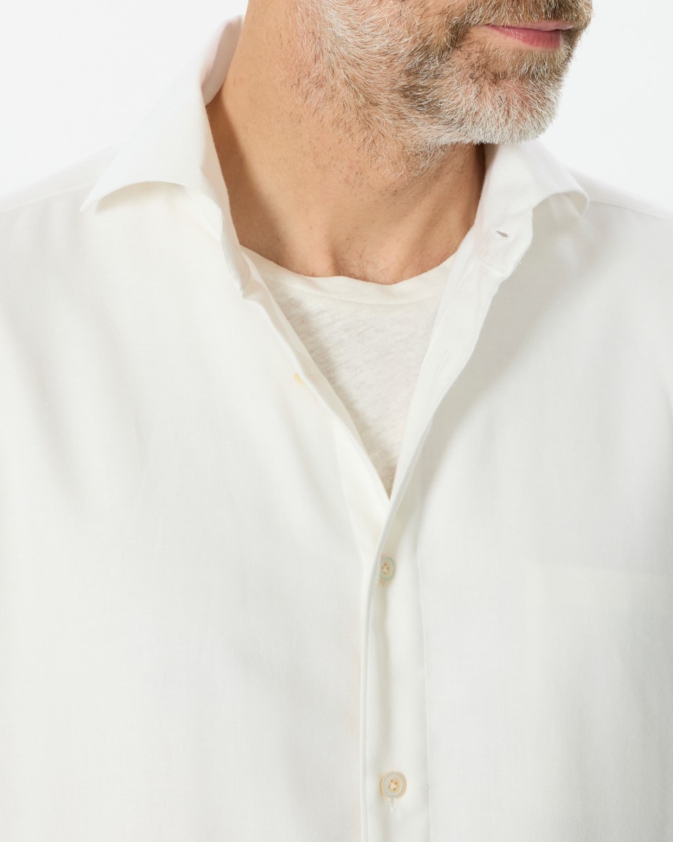 温もりある色味と肌触りの良い素材感は、着る人の印象を上品に引き立て、大人の装いを格上げしてくれます。Finamoreが誇る伝統と技術が詰まったシャツを、ぜひお試しください。