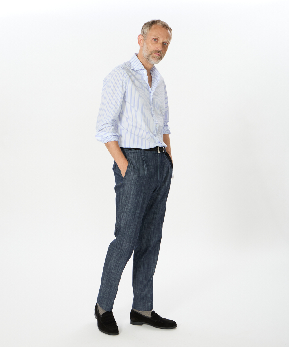 Finamoreのスポーツラインは、袖付け・ボタン付け・ガゼット付けの3工程をハンドメイドで仕立てたこだわりの一着。手縫いならではの柔らかな風合いや温かみがあり、動きを妨げない自然なフィット感を実現する独自のパターン設計も秀逸です。