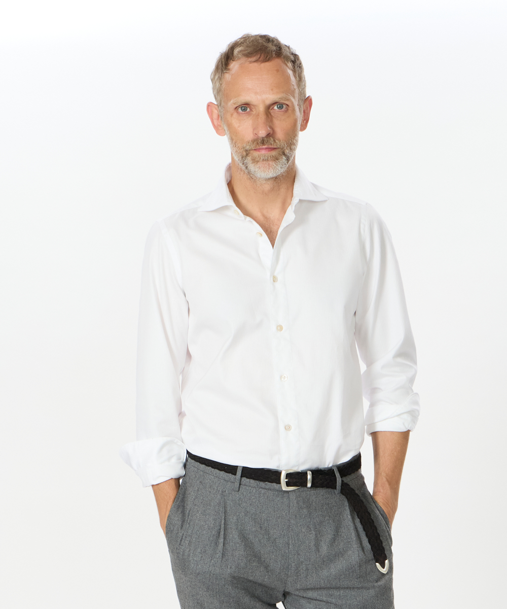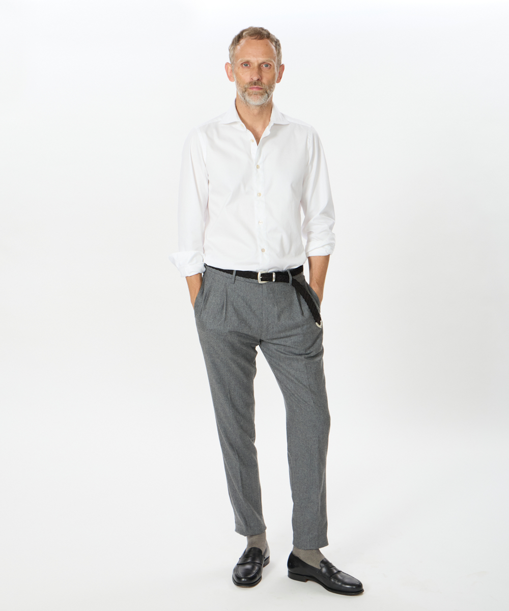 襟型"SIMONE(シモーネ)"は、Finamoreを代表するカッタウェイカラー。