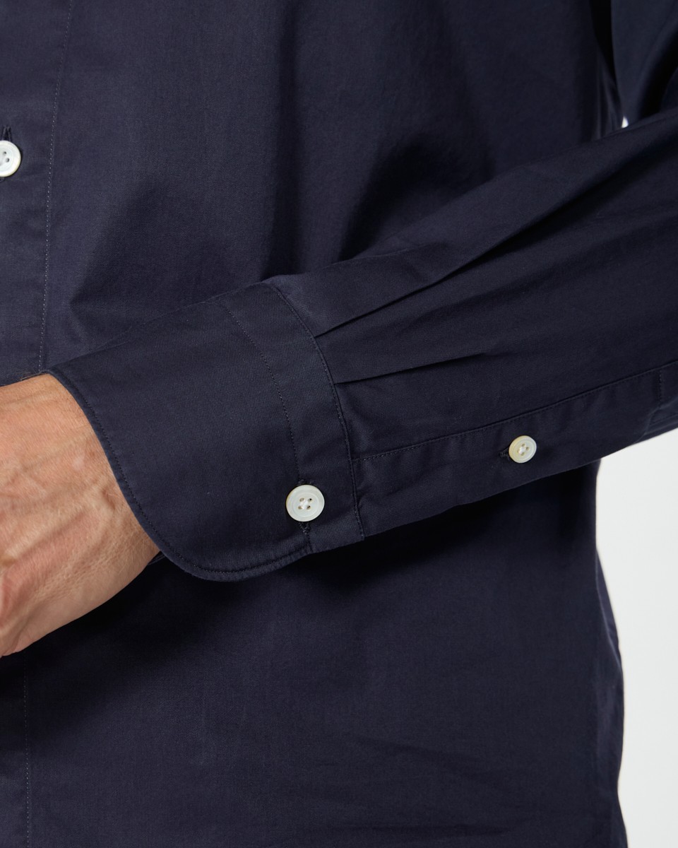 Finamore(フィナモレ)のスポーツラインは、袖付け・ボタン付け・ガゼット付けの3工程をハンドメイドで仕上げた、クラフツマンシップの光る一着。