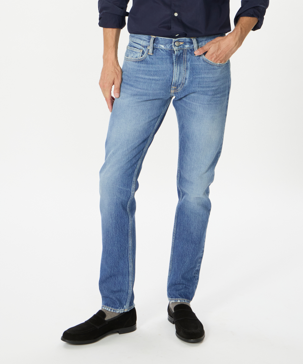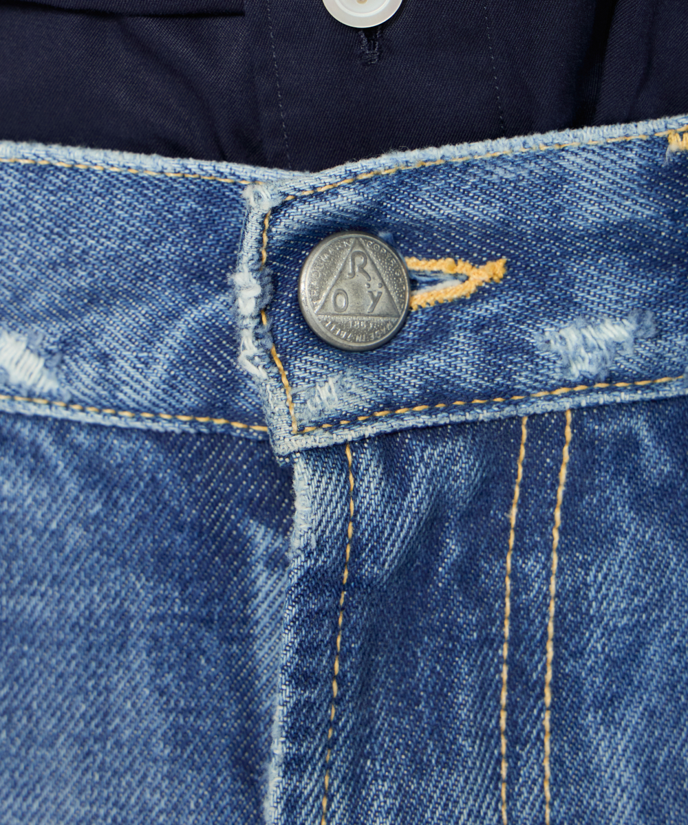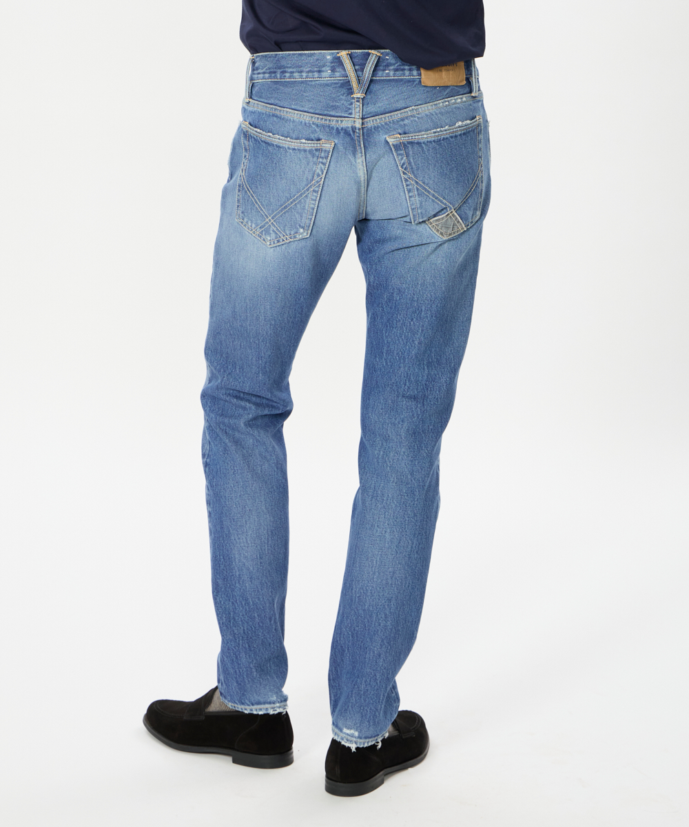 5ポケット仕様をベースに、ブランドが誇る卓越したヴィンテージ加工を施した一本。穿き込まれたような自然なエイジングが、他にはない深みと存在感を演出します。