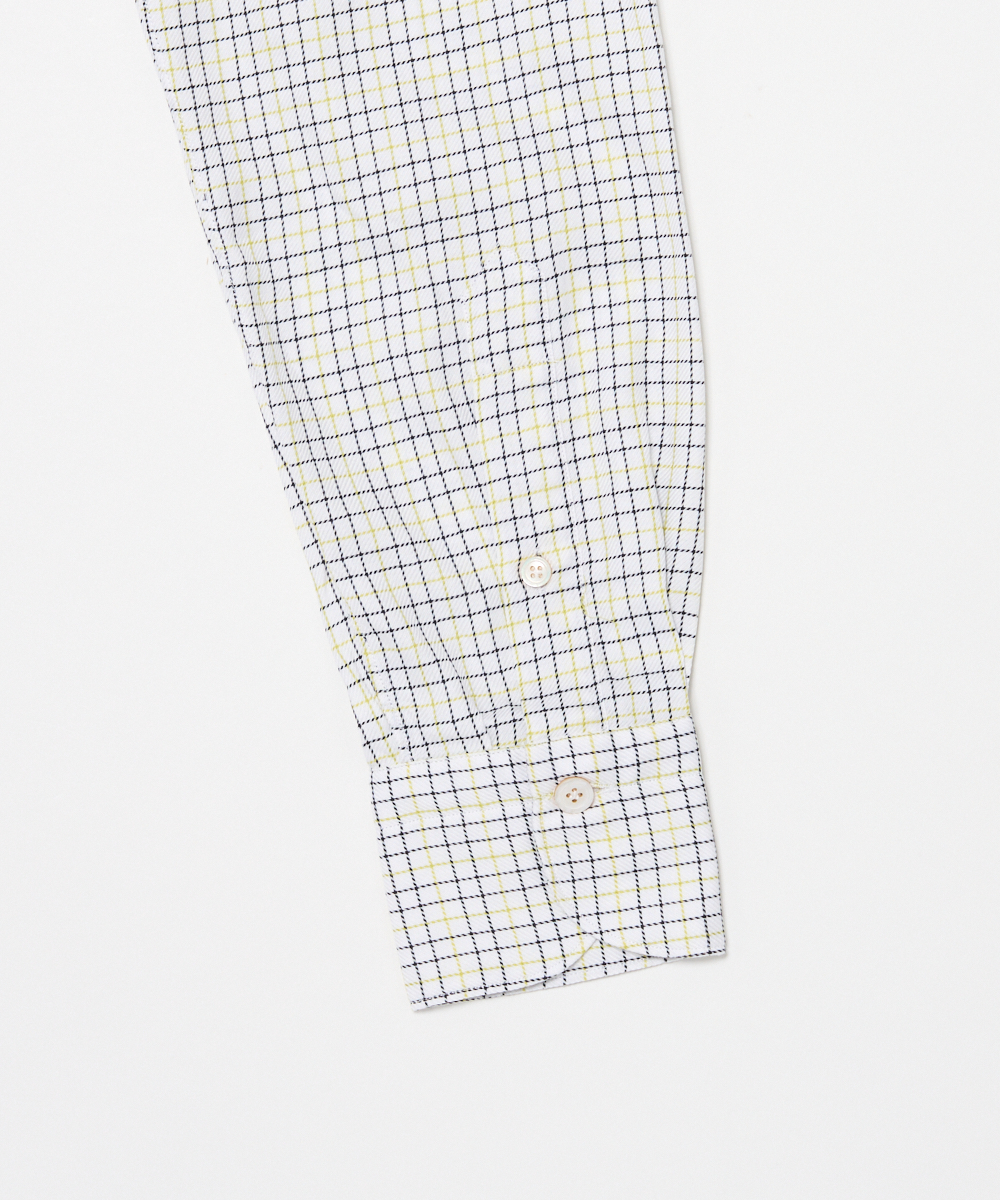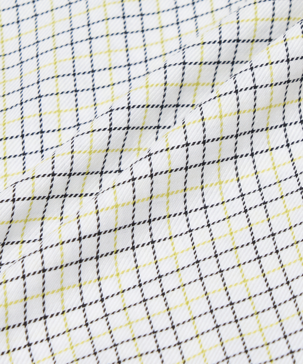 コットン100%ファブリックを採用。イエローとブラックで織りなすチェック柄が印象的な一枚。コントラストの効いた色使いながらも、品のある配色バランスで、大人のスタイルにも自然と馴染みます。初春にも取り入れやすい軽やかなカラーリングで、季節の変わり目のジャケットスタイルやカジュアルコーディネートにすっと馴染むのも魅力。一枚で着てもコーディネートのアクセントになり、ジャケットやスラックスと合わせることで上品さをキープしつつ、程よく遊び心を加えられます。
