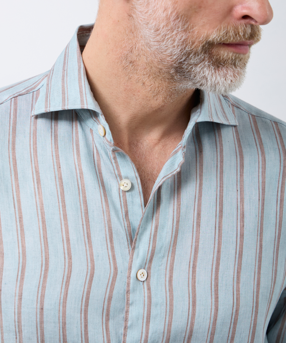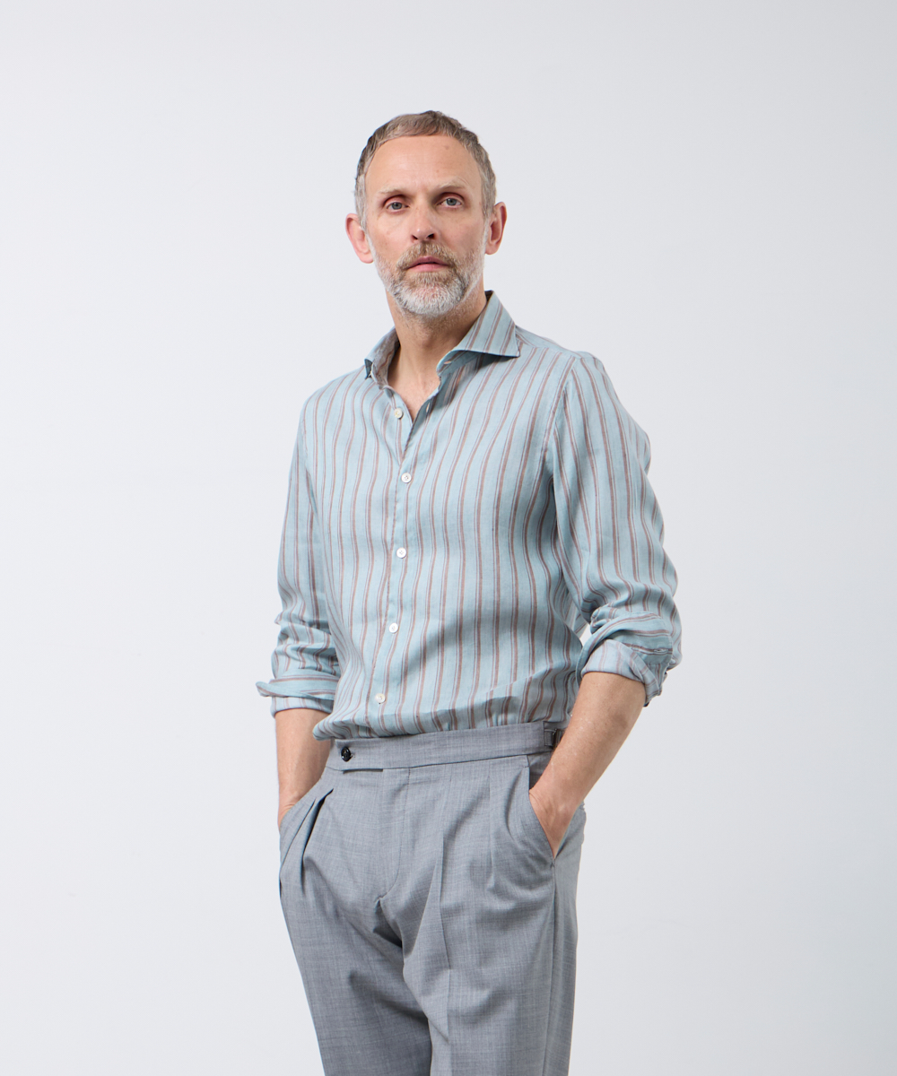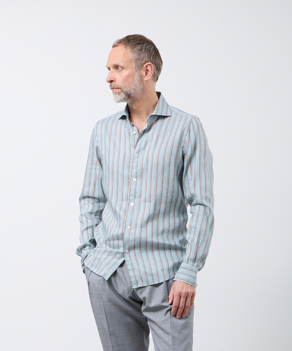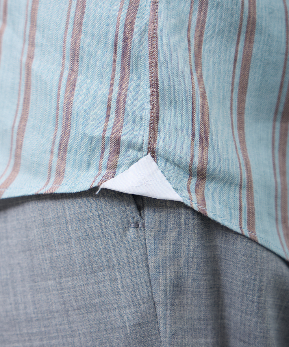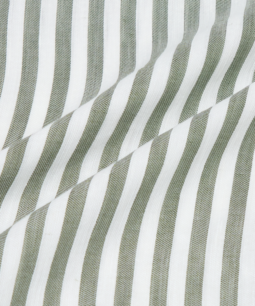 夏には欠かせないリネンファブリックを採用。リネンならではの高い通気性と吸湿性により、熱がこもりにくく、快適な着心地を保ちます。さらに、リネン特有のさりげないシワ感が生み出す表情に、ストライプ柄が縦のラインを強調し、軽やかさの中に程よいメリハリをプラス。無地にはない表情が、シンプルな装いでも奥行きのあるスタイリングを完成させます。
