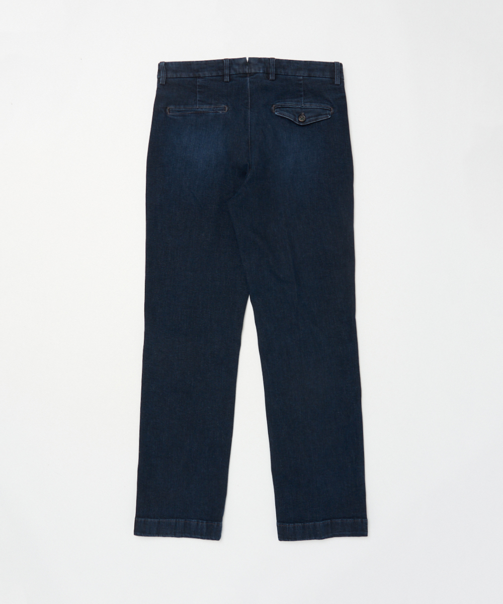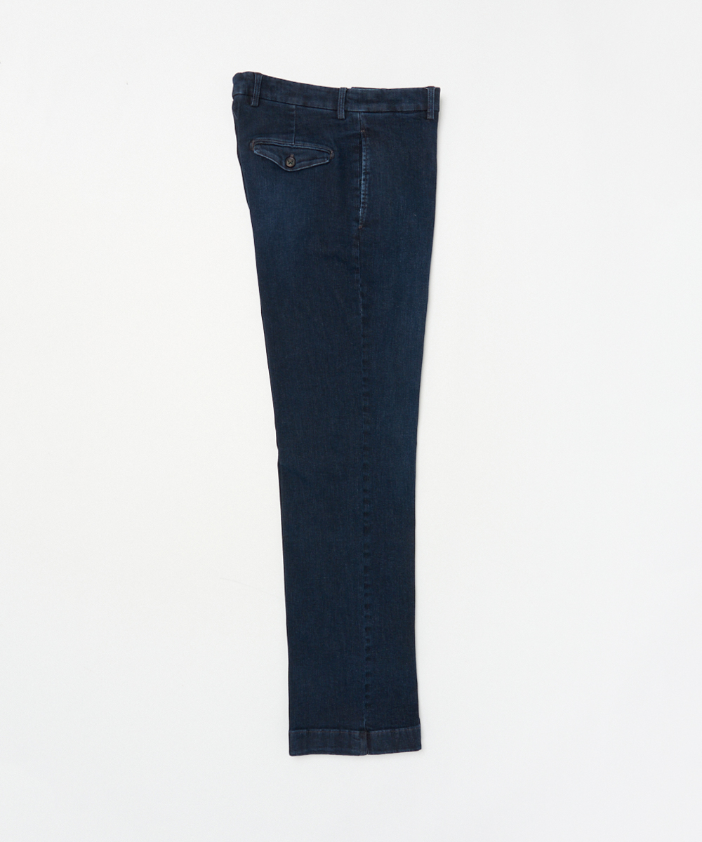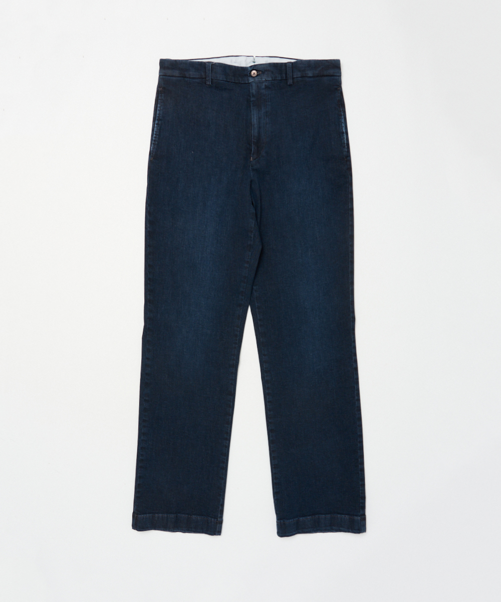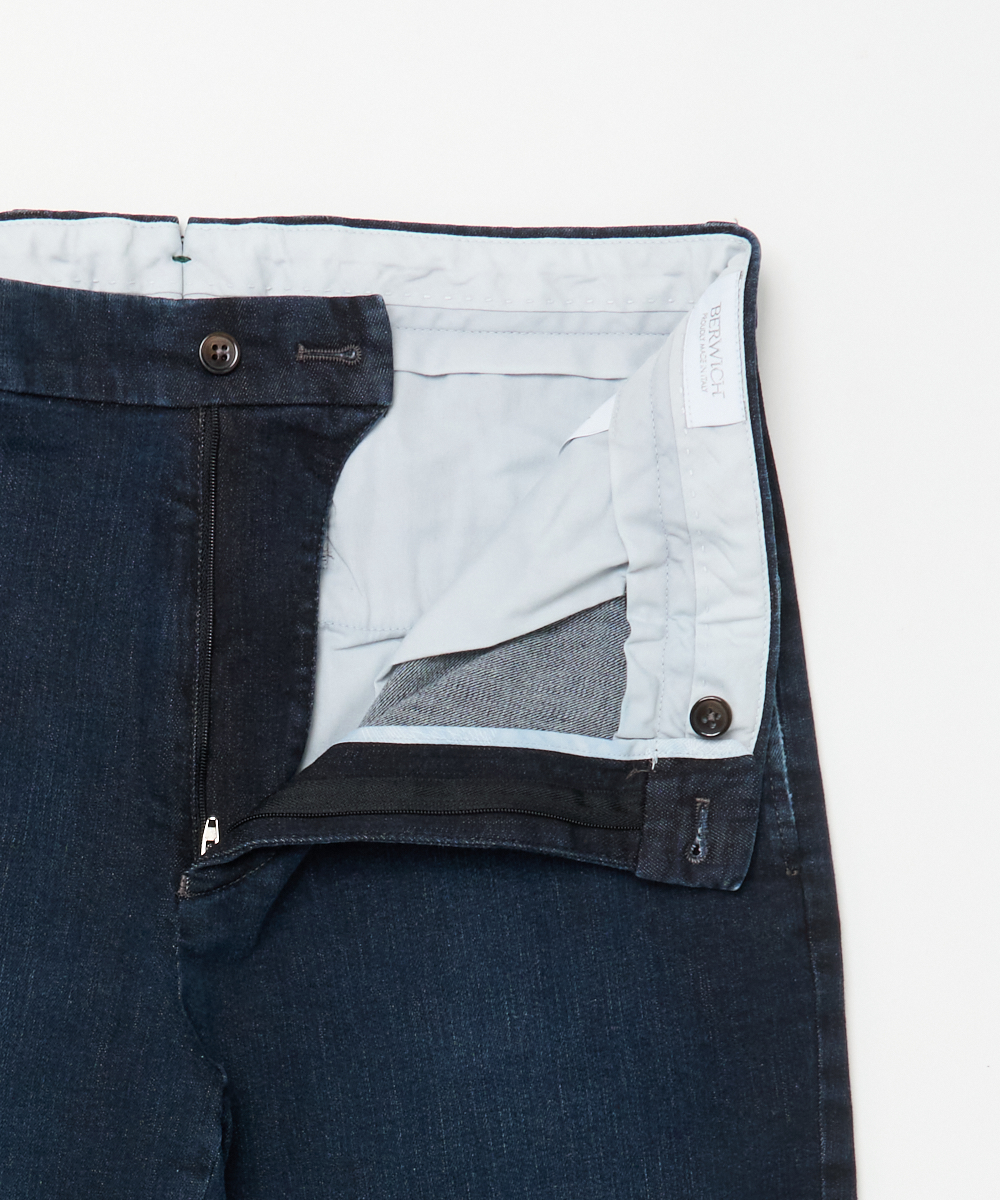 ワイドストレート×デニムという組み合わせにより、BERWICHが誇る美脚ラインを最大限に引き出した一本。穿き込むほどに馴染み、さりげない色落ちがスタイリングにこなれ感を与えます。デニムの表情を持ちながらも、スラックスとしての品格を備えているため、ラフになりすぎず、革靴からスニーカーまで幅広い足元と好相性です。