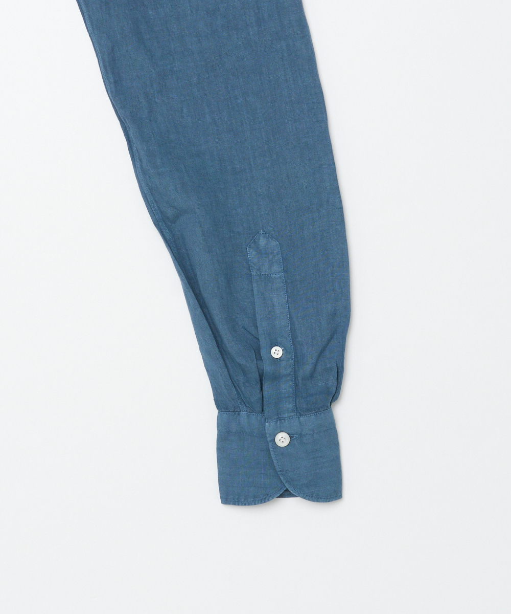 袖付け・ボタン付け・ガゼット付けの3工程をハンドメイドで仕上げ、手縫いならではの柔らかな表情と、動きを妨げない独自のパターン設計により、他にはない快適な着心地を実現。肩幅は通常よりややコンパクトに設計しながら、「いせ込み」と前振りの袖付けを組み合わせることで、十分な可動域を確保しており、見た目のシャープですっきりとした印象をあたえますが、まったくストレスを感じさせない着用感が魅力です。身体に自然にフィットしつつ、程よくリラックスしたシルエットは、タックアウトでも美しく映えるよう計算されており、カジュアルからきちんと感のあるスタイリングまで幅広く対応します。