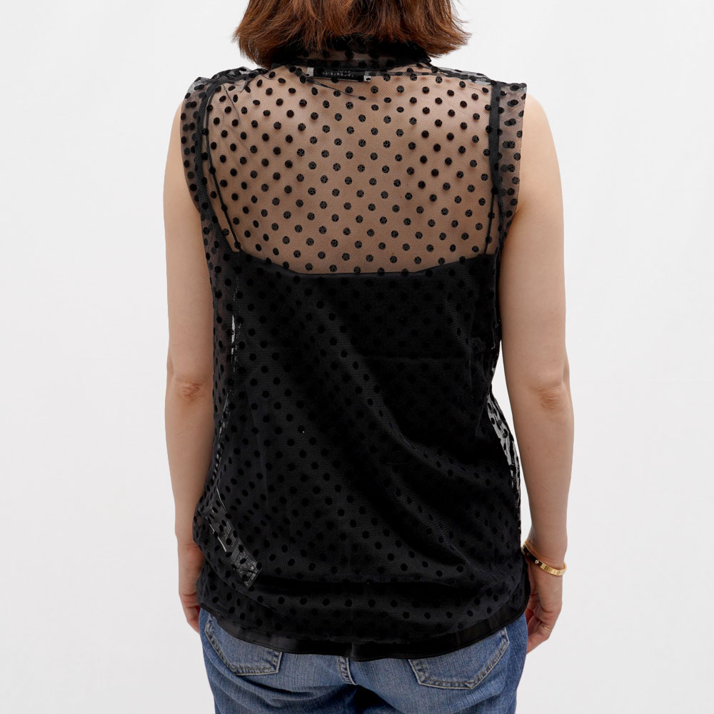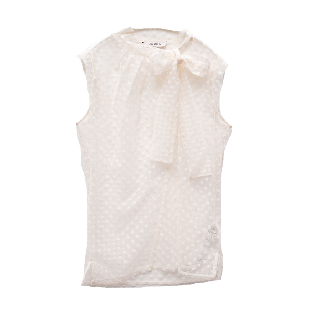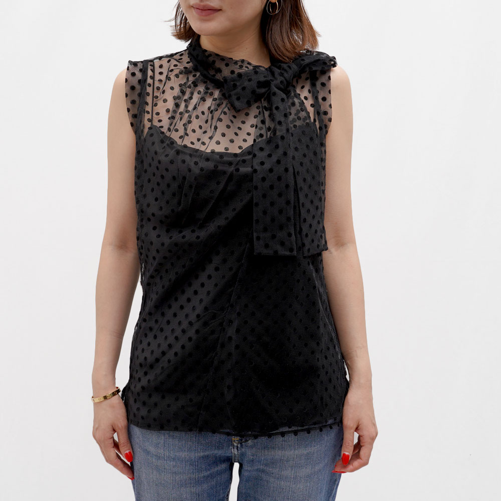 ドットのレースがなんとも愛らしいクルーネックのブラウス。