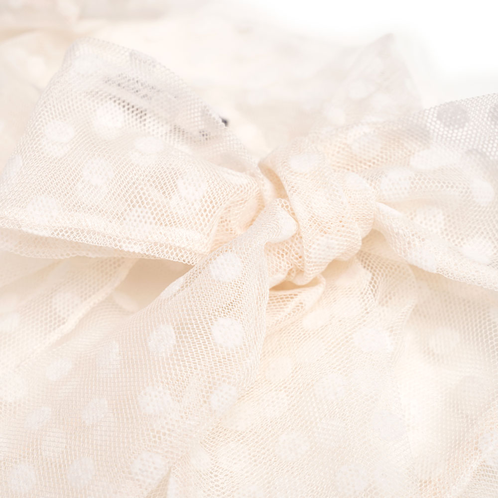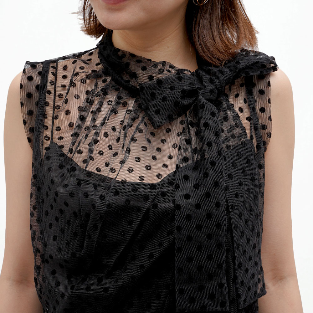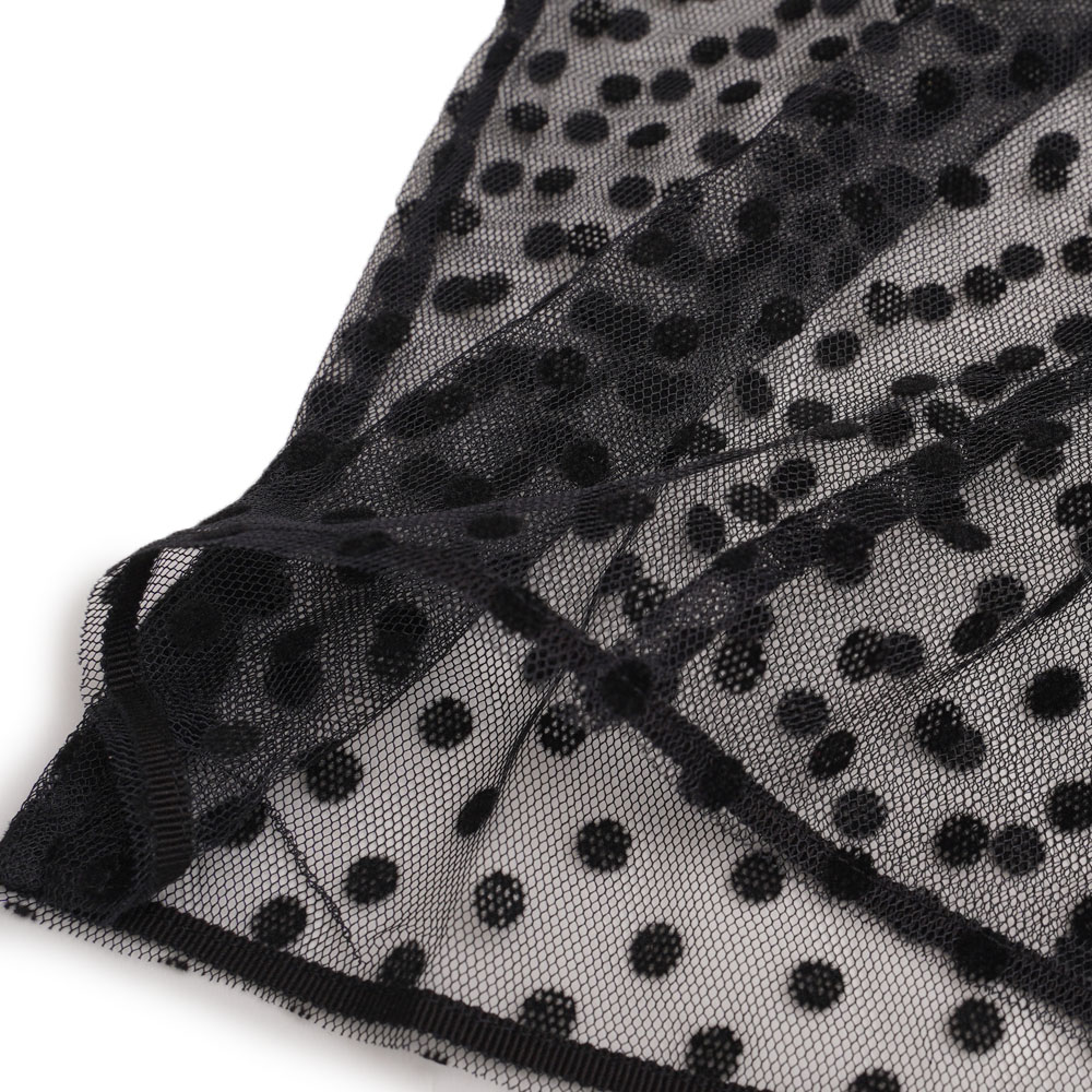 ポリエステル100%のドットのレースを使用しています。
