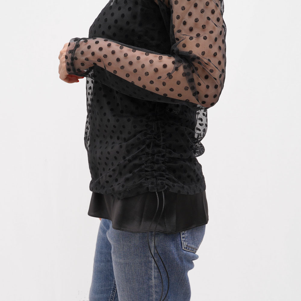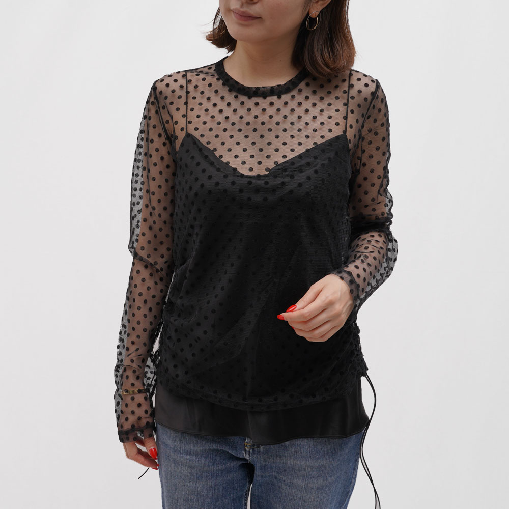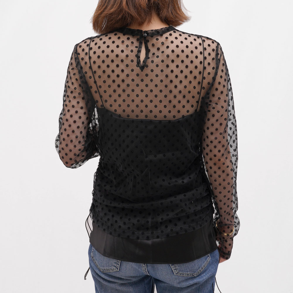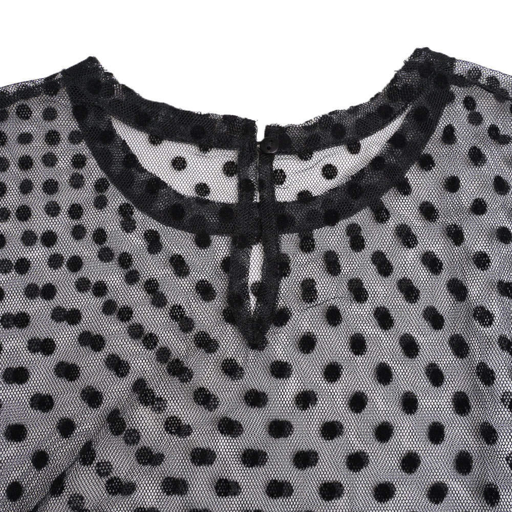 ドットのレースがなんとも愛らしいクルーネックのブラウス。