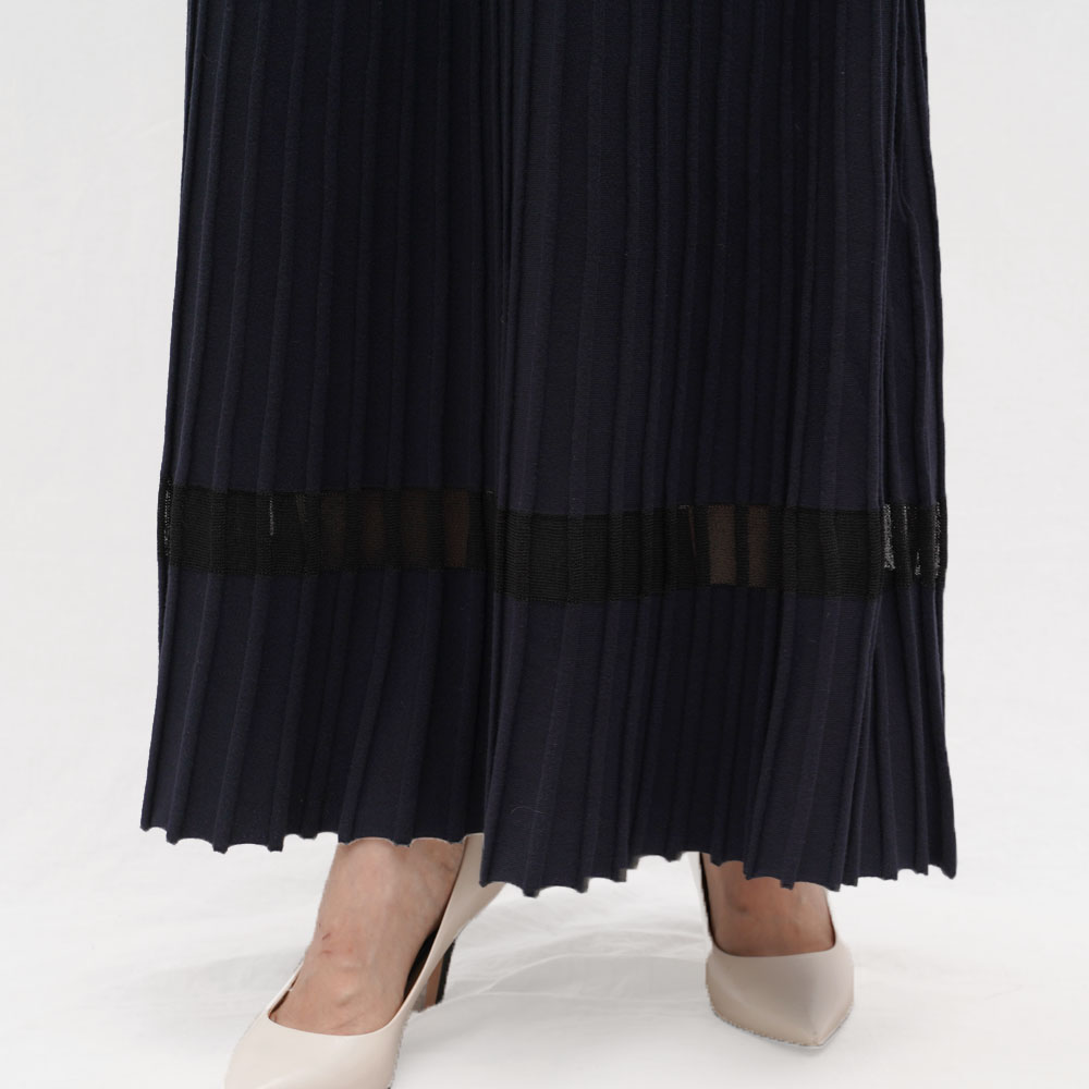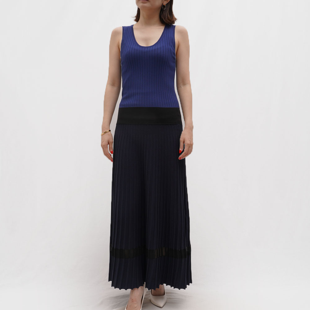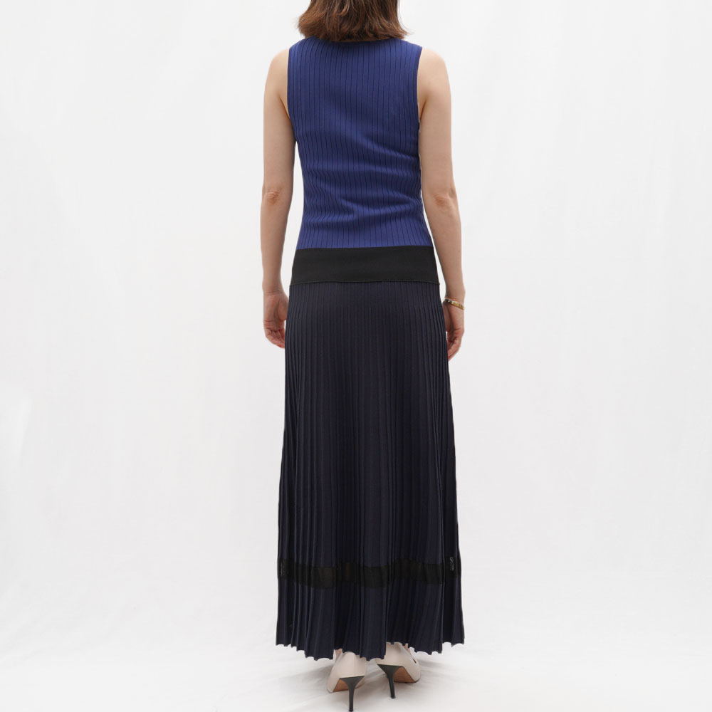 ニットのプリーツが綺麗なノースリーブのニットワンピース。
