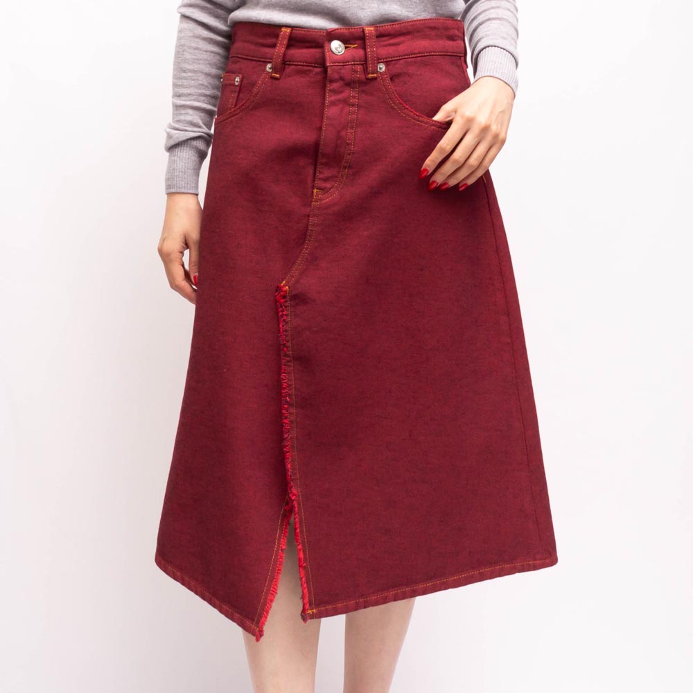 フロントに軽くスリットが入ったデニムスカート。